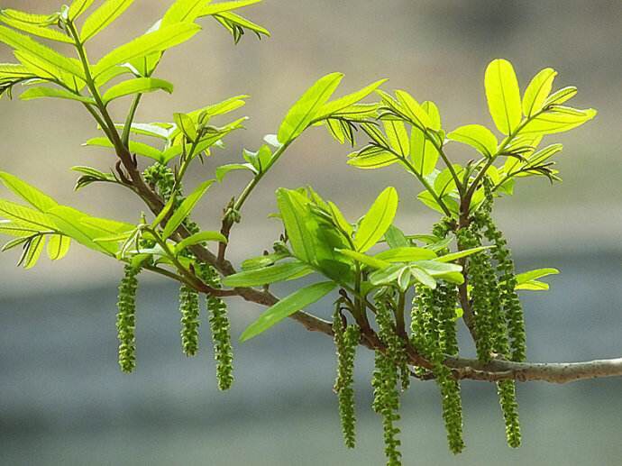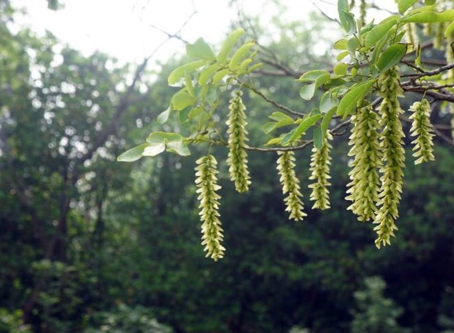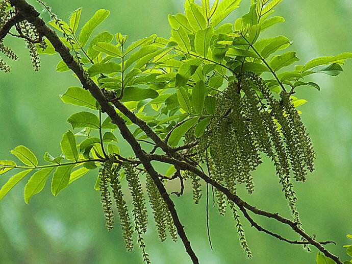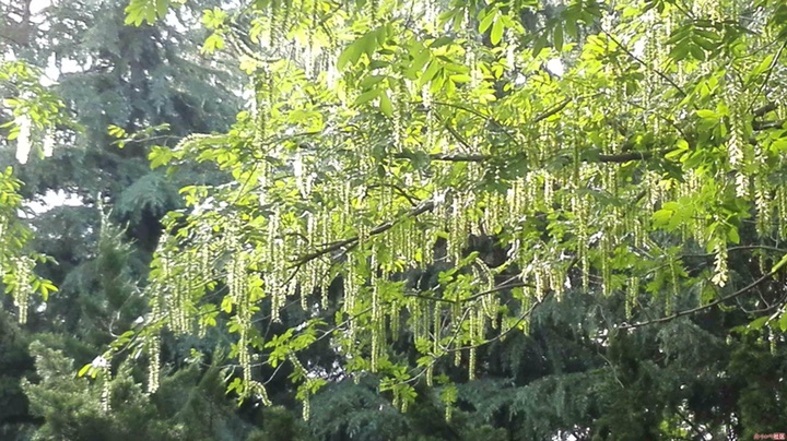 枫杨(Pterocarya stenoptera C. DC),别名:白杨、大叶柳、大叶头杨树等。落叶乔木,高达30米,胸径达1米;幼树树皮平滑,浅灰色,老时则深纵裂;小枝灰色至暗褐色,具灰黄色皮孔;芽具柄,密被锈褐色盾状着生的腺体,叶多为偶数或稀奇数羽状复叶。枫杨喜光,略耐侧荫,幼树耐荫,耐寒能力不强,主要分布于黄河流域以南。枫杨树冠宽广,枝叶茂密,生长迅速,是种常见的庭荫树和防护树种。而且树皮还有祛风止痛、杀虫、敛疮等功效。