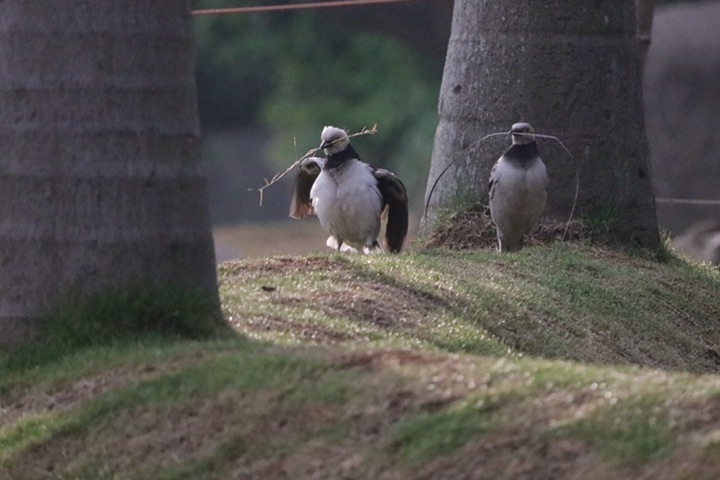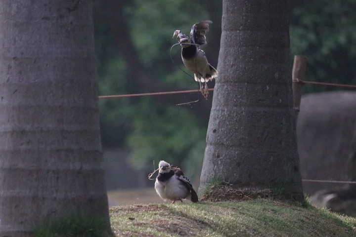 勤劳的黑领椋鸟😃 ,看最后一张图,地上那只脑袋上的毛被吹平了,好可爱