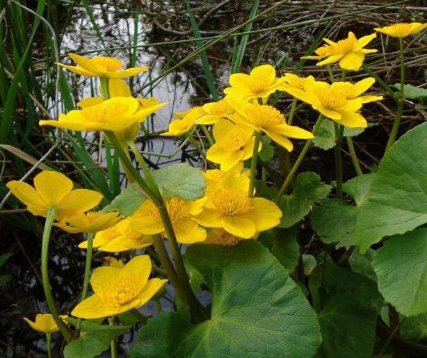 驴蹄草(学名:Caltha palustris L.)是毛茛科,驴蹄草属多年生草本植物,全部无毛,有多数肉质须根。茎高可达48厘米,实心,具细纵沟,基生叶有长柄;叶片圆形,圆肾形或心形,顶端圆形,基部深心形或基部二裂片互相覆压,边缘全小齿;聚伞花序;苞片三角状心形,边缘牙齿;萼片黄色,倒卵形或狭倒卵形,花药长圆形,花丝狭线形;种子狭卵球形,黑色,5-9月开花,6月开始结果。