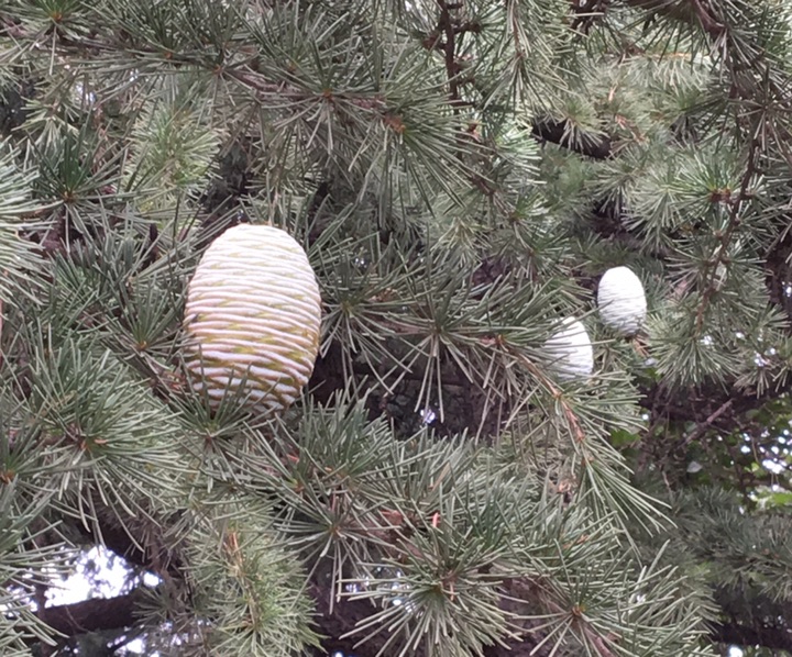 近距离拍雪松的这个白胖椭圆果子是我期待已久的事,但总是未能如愿,松果总是站立在高高的枝头,一起一伏地不肯低垂迁就望眼欲穿的我。