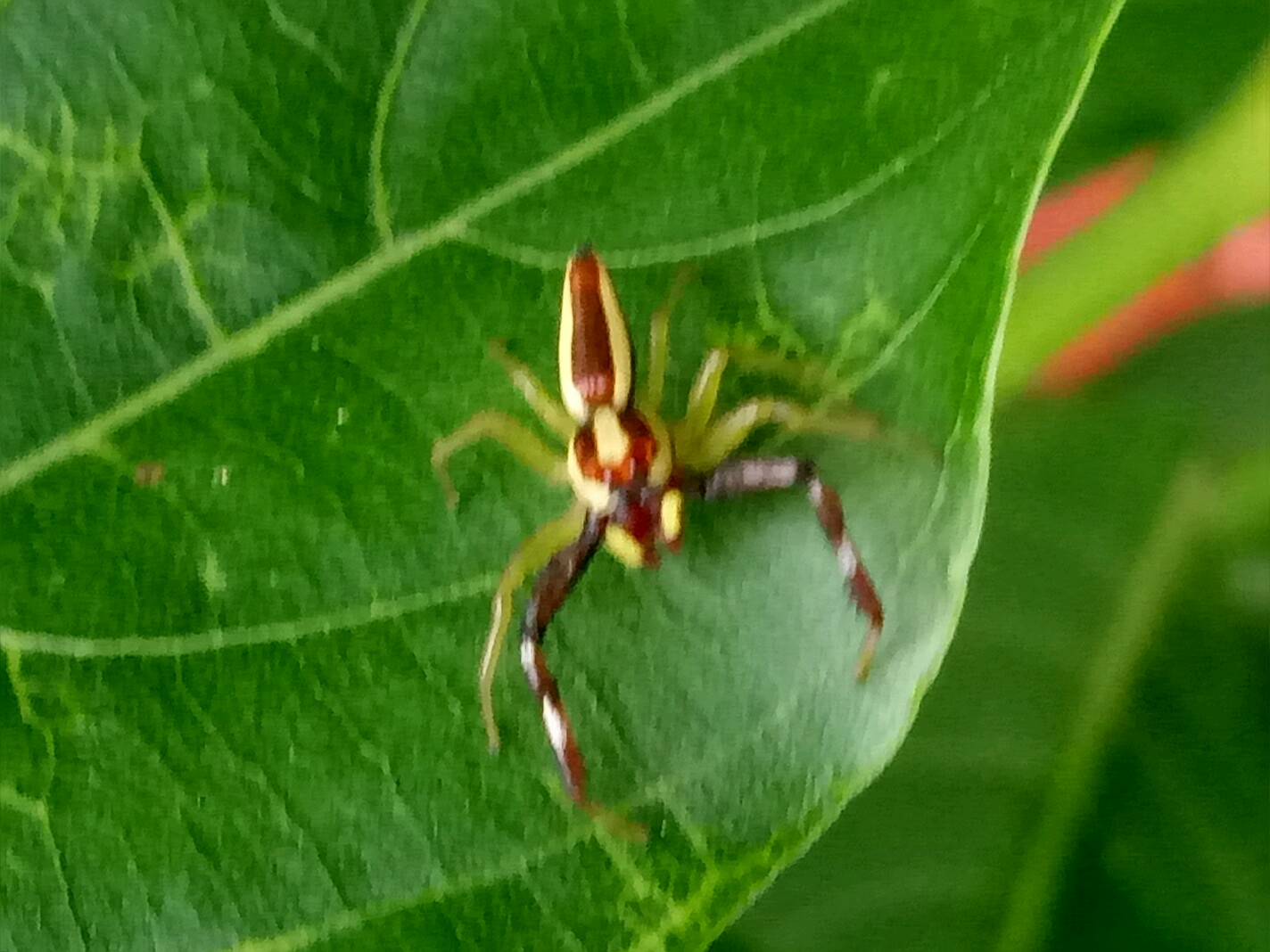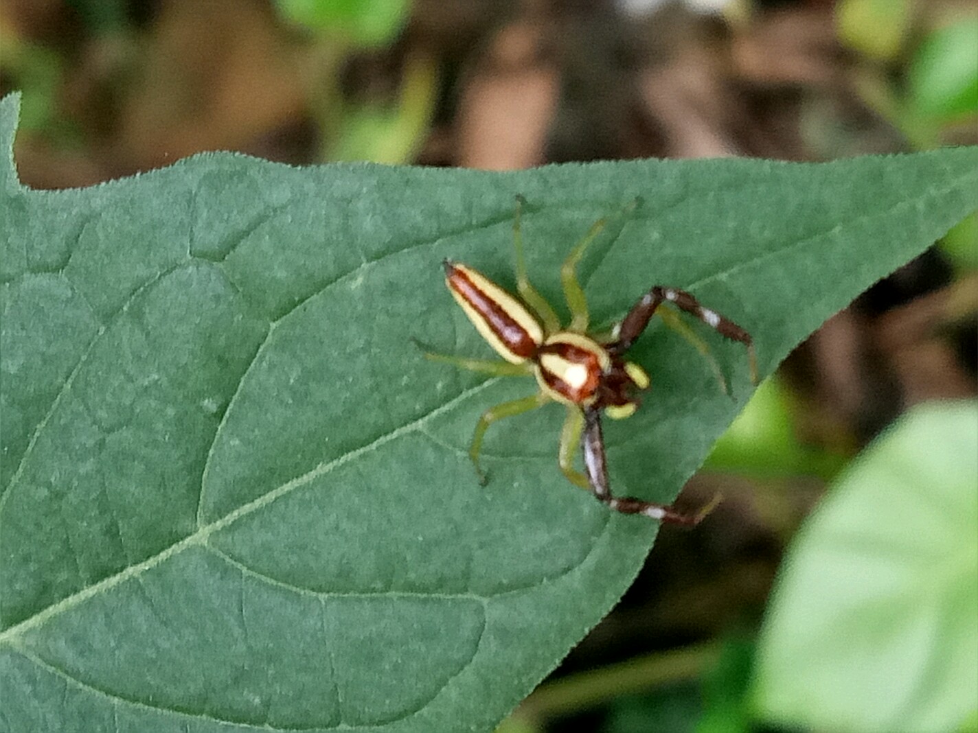 跳蛛别称虎蝇,擅于跳跃,捕食苍蝇,因而别称虎蝇。全球五万多品种。刚拍摄它时,由一片树叶跳到另一片树叶,跟着跳上我的手机,再跳到我的手上,可吓坏宝宝了!😰😰😰