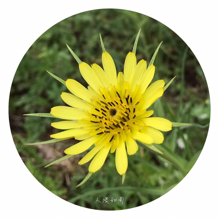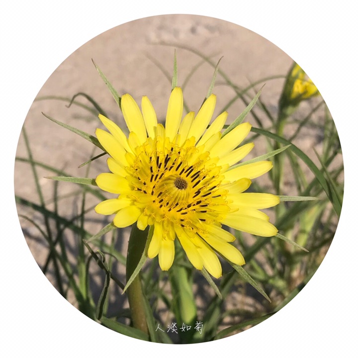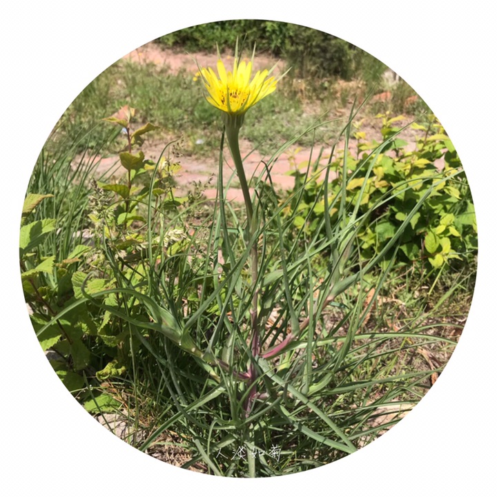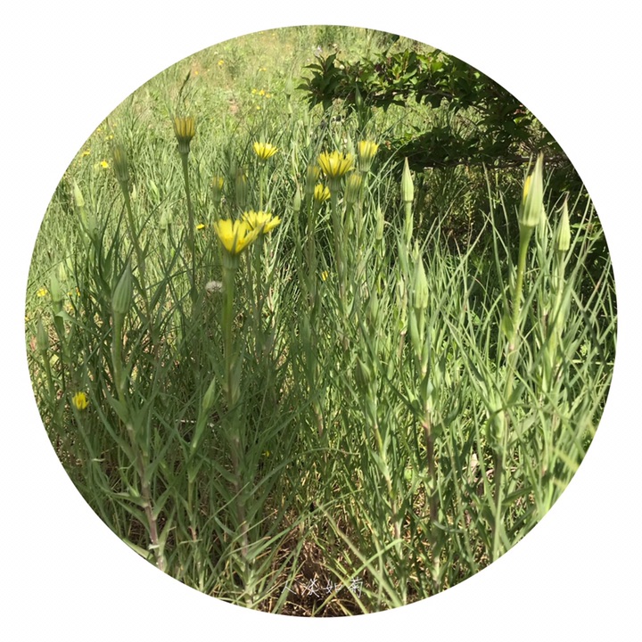 二年生草本,高30-60 (90)厘米。根圆柱状,垂直直伸,根颈被残存的基生叶柄。茎直立,不分枝或分枝,有纵条纹,无毛。基生叶及下部茎叶线形或线状披针形,长10-25(40)厘米,宽3-18(24)毫米,灰绿色,先端渐尖,全缘或皱波状,基部宽,半抱茎;中部及上部茎叶披针形或线形,长3-8厘米,宽3-10毫米。头状花序单生茎顶或植株含少数头状花序,生枝端。总苞圆柱状,长2-3厘米。总苞片8-10枚,披针形或线状披针形,长1.5-3.5厘米,宽5-10毫米,先端渐尖,边缘狭膜质,基部棕褐色。舌状小花黄色。瘦果长纺锤形,褐色,稍弯曲,长1.5-2厘米,有纵肋,沿肋有疣状突起,上部渐狭成细喙,喙长6-8毫米,顶端稍增粗,与冠毛连接处有蛛丝状毛环。冠毛淡黄色,长1-1.5厘米。花果期5-9月。