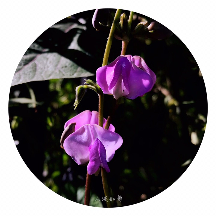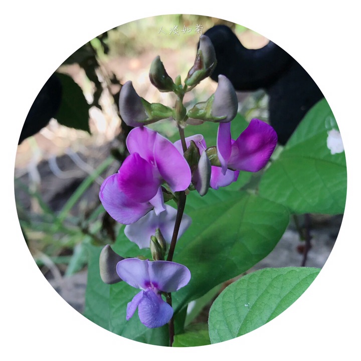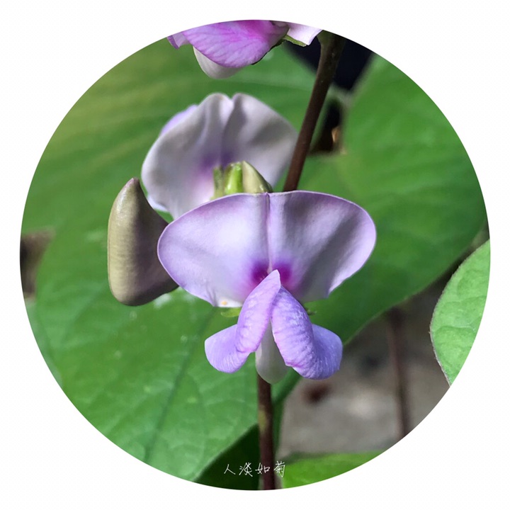 多年生缠绕藤本。全株几无毛,茎长可达6米,常呈淡紫色。羽状复叶具3小叶;托叶基着,披针形;小托叶线形,长3-4毫米;小叶宽三角状卵形,长6-10厘米,宽约与长相等,侧生小叶两边不等大,偏斜,先端急尖或渐尖,基部近截平。总状花序直立,长15-25厘米,花序轴粗壮,总花梗长8-14厘米;小苞片2,近圆形,长3毫米,脱落;花2至多朵簇生于每一节上;花萼钟状,长约6毫米,上方2裂齿几完全合生,下方的3枚近相等;花冠白色或紫色,旗瓣圆形,基部两侧具2枚长而直立的小附属体,附属体下有2耳,翼瓣宽倒卵形,具截平的耳,龙骨瓣呈直角弯曲,基部渐狭成瓣柄;子房线形,无毛,花柱比子房长,弯曲不逾90°,一侧扁平,近顶部内缘被毛。荚果长圆状镰形,长5-7厘米,近顶端最阔,宽1.4-1.8厘米,扁平,直或稍向背弯曲,顶端有弯曲的尖喙,基部渐狭;种子3-5颗,扁平,长椭圆形,在白花品种中为白色,在紫花品种中为紫黑色,种脐线形,长约占种子周围的2/5。花期4-12月。