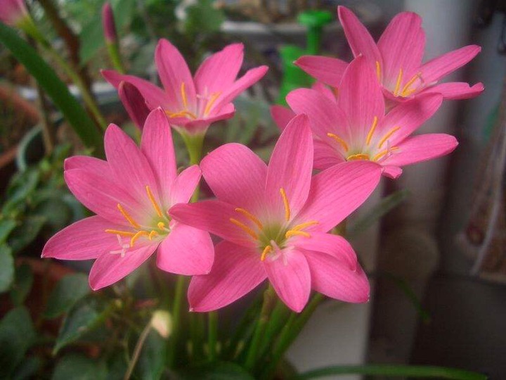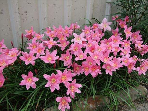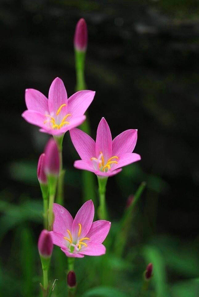 风雨兰是对石蒜科多种长相相似的球根植物的统称,因为它常常在春夏之际大雨过后突然的盛开,花型像百合,所以又称雨百合(rainlily),常见的种有韭莲、葱莲等。花色多样,有粉红色、浓桃红色、黄色及白色等。