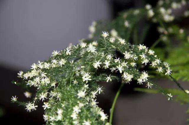 文竹花(学名:Asparagus setaceus (Kunth) Jessop)又称云片松、刺天冬、云竹、山草、鸡绒芝。攀援植物,高可达3-6米。根稍肉质,细长。茎的分枝极多,分枝近平滑。叶状枝通常每10-13枚成簇,刚毛状,略具三稜,长4-5毫米;鳞片状叶基部稍具刺状距或距不明显。花通常每1-3(-4)朵腋生,白色,有短梗;花被片长约7毫米。浆果直径约6-7毫米,熟时紫黑色,有1-3颗种子。