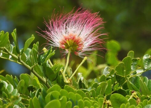 这种树叫合欢树,又名含羞树。通常五~六月开花。