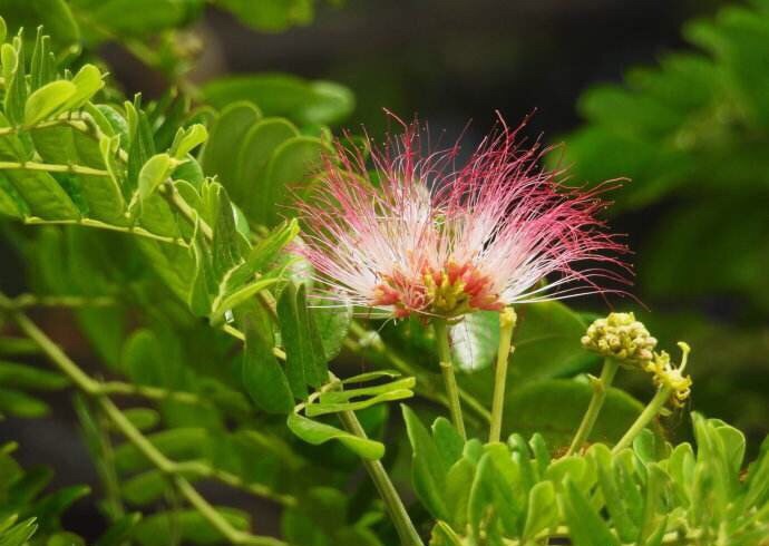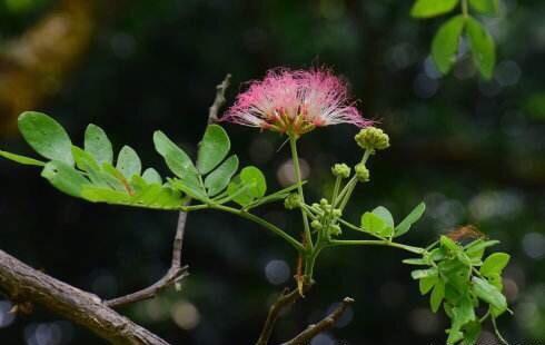 雨树(学名:Samanea saman (Jacq.) Merr.)是豆科雨树属植物,无刺大乔木;树冠极广展,干高10-25米,分枝甚低;总叶柄长15-40厘米,羽片及叶片间常有腺体。花玫瑰红色,组成单生或簇生、直径5-6厘米的头状花序,生于叶腋。果瓣厚,绿色,肉质,成熟时变成近木质,黑色;种子约25颗,埋于果瓤中。花期8-9月。