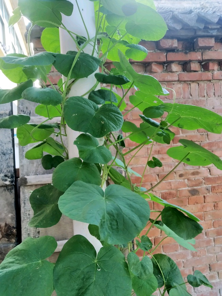 旱金莲的叶子像小荷叶,叶柄联着叶子中央的。