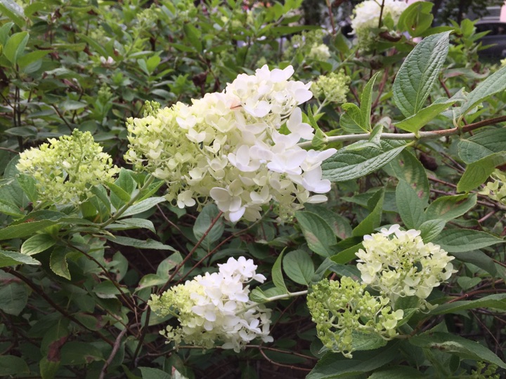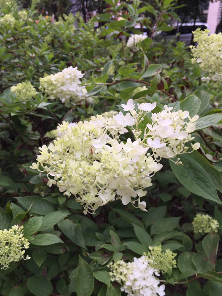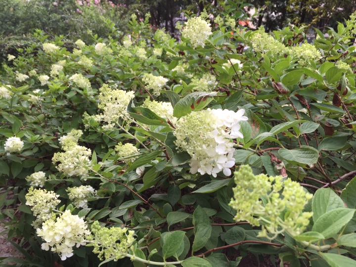 树荫下的圆锥绣球初绽芳华