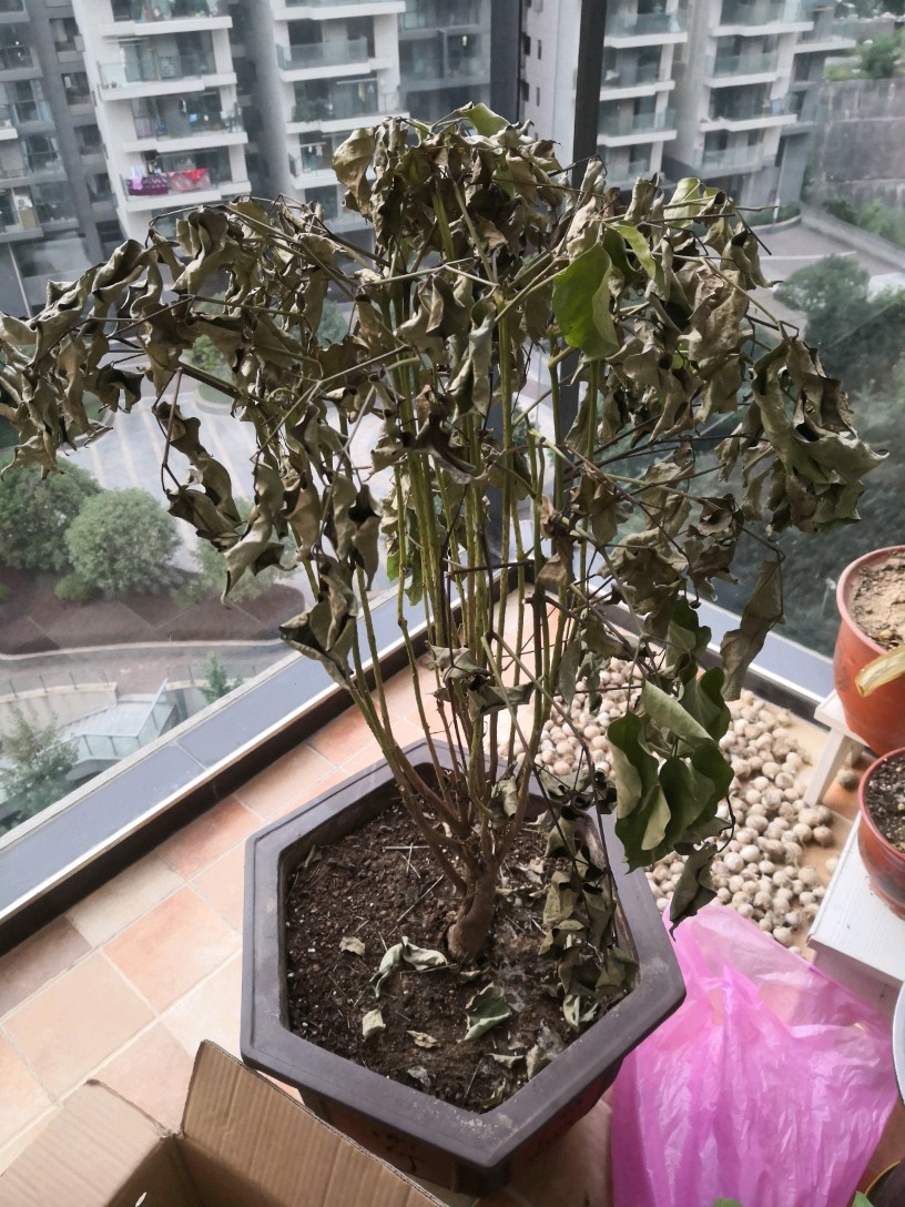 干枯的修剪掉,浇透水,放在阴凉、通风,有散射光(明亮,没有直射光)的地方慢慢养护吧