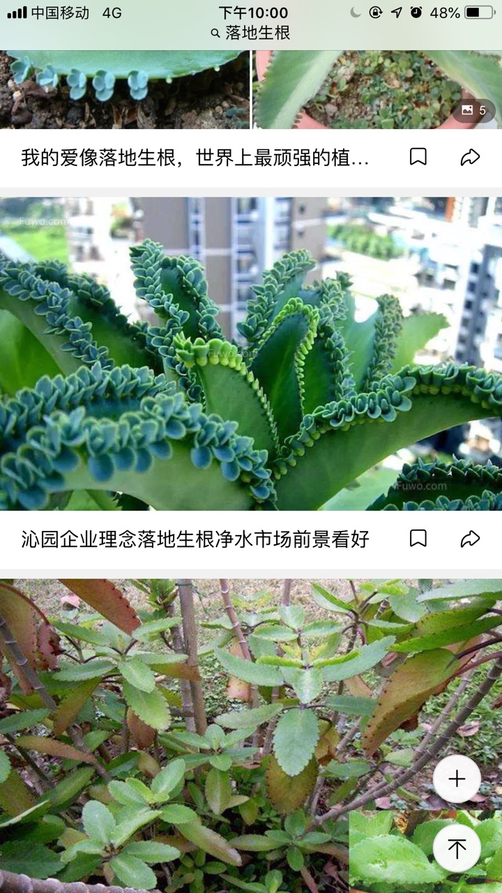 落地生根(学名:Bryophyllum pinnatum (Lam.) Oken):多年生草本,高40-150厘米;茎有分枝。羽状复叶,长10-30厘米,小叶长圆形至椭圆形,长6-8厘米,宽3-5厘米,先端钝,边缘有圆齿,圆齿底部容易生芽,芽长大后落地即成一新植物。圆锥花序顶生,长10-40厘米;花下垂,花冠高脚碟形,长达5厘米,基部稍膨大,向上成管状,裂片4,卵状披针形,淡红色或紫红色。蓇葖包在花萼及花冠内;种子小,有条纹。花期1-3月。原产非洲。中国各地栽培,有逸为野生的。全草入药,可解毒消肿,活血止痛,拔毒生肌。栽培作观赏用。常用叶插繁殖。温暖季节将成熟叶片采下,平铺在湿砂上,数日即可在叶缘缺处生根成活长出小植物,长出后即可割取移入小盆内。(概述图片参考资料来源:[1])