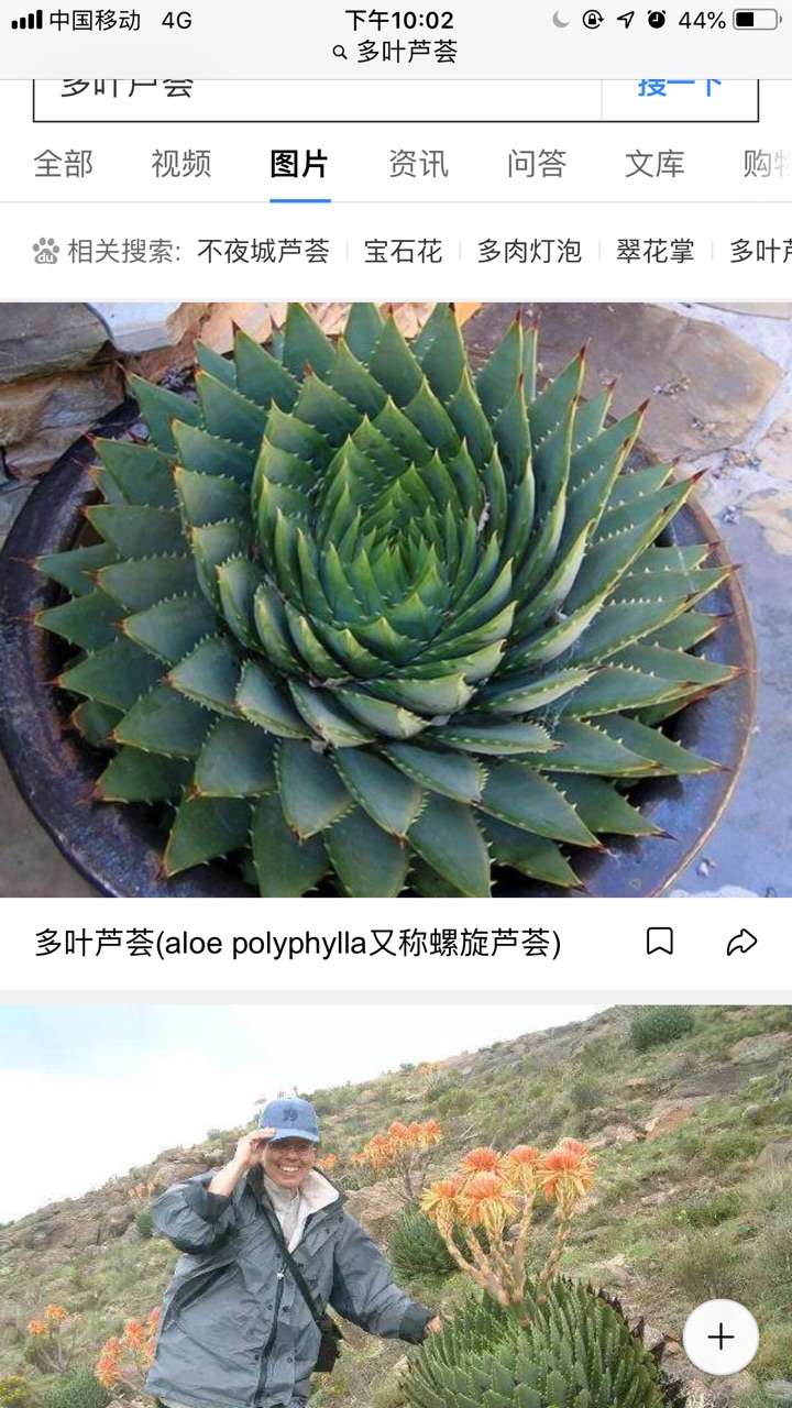 多叶芦荟(学名:Aloe polyphylla Pillans):是一种无茎多浆植物。每株是一个独立单生莲座丛,植株直径达高30厘米,宽90厘米立。叶呈莲座状螺旋形排列,翠绿色至灰绿色,肉质柔软,多汁肥厚。叶缘有不规则锯齿。成型后每株130-150枚叶片,成螺旋状排列,螺旋有时为顺时针,有时为逆时针。花茎高60厘米,花红色至肉粉红色,花柄有分枝。每条分支末端开一花,花朵紧凑,花期春季至初夏。生长于海拔为2000-2500米高的草原地带,甚至更高海拔的地区的山坡上。在成株时的生长并不缓慢,但是由于其有很强的顶芽优势,所以几乎是不会在自然情况下产生分株的,而其花非常壮观美丽,开花的条件比较严格,在原生地也仅是在特殊气候下才开,遇到气候不适宜的年份,甚至多年不开花。因为具有极高的观赏价值,世界多地和中国均有栽培,人工种植采用幼苗移栽或扦插等技术进行无性繁殖,喜欢昼夜温差极大的环境,该物种的寿命很长,据说植株可存活50年以上。原生种产于非洲东南部面积3万平方公里的莱索托王国,是世界上最