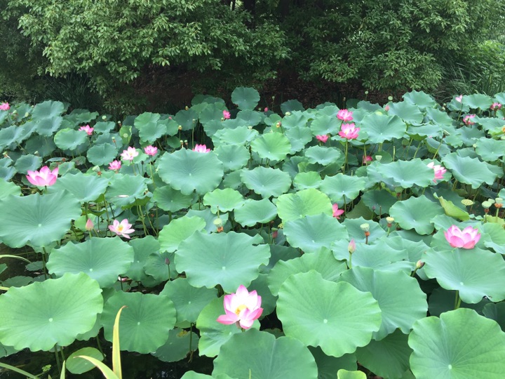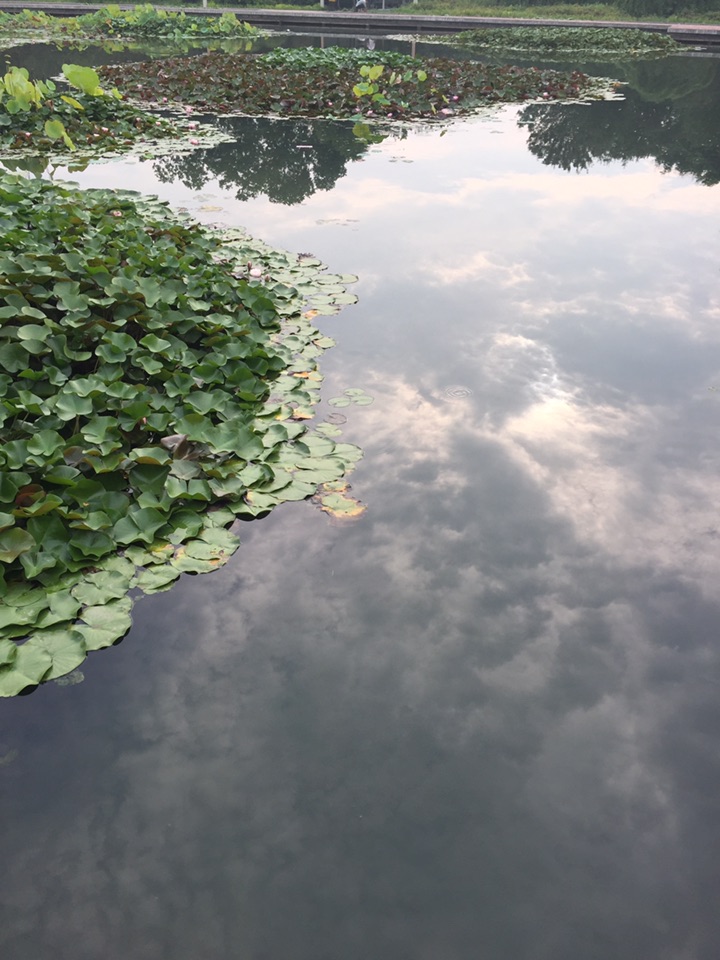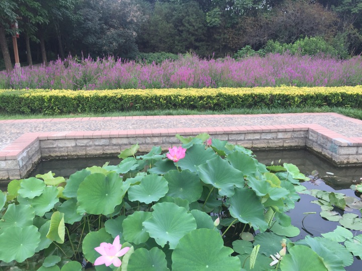 清晨,植物园里水流鸟鸣花香,天气虽然很热,但这一切让人舒心