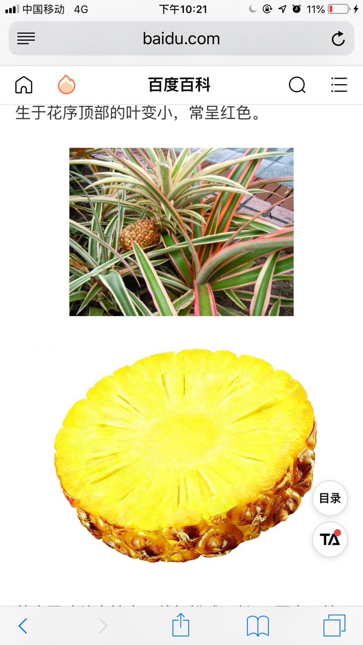 菠萝(学名:Ananas comosus),是热带水果之一。福建和台湾地区称之为旺梨或者旺来(ông-lâi),新马一带称为黄梨,大陆及香港称作菠萝。有70多个品种,岭南四大名果之一。菠萝原产于南美洲巴西、巴拉圭的亚马逊河流域一带,16世纪从巴西传入中国。 现在已经流传到整个热带地区。其可食部分主要由肉质增大之花序轴、螺旋状排列于外周的花组成,花通常不结实,宿存的花被裂片围成一空腔,腔内藏有萎缩的雄蕊和花柱。叶的纤维甚坚韧,可供织物、制绳、结网和造纸。[1]