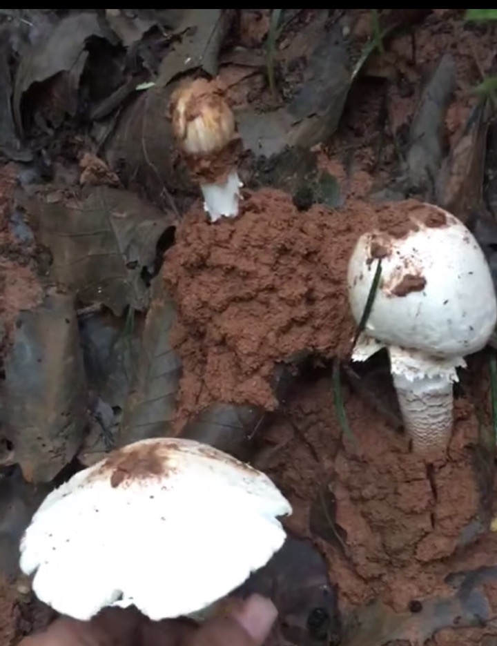 为什么我们叫它土腿鸡枞呢?因为它的腿实在是太长太长了,比一般的蘑菇都要长很多,而且是埋在土里的。