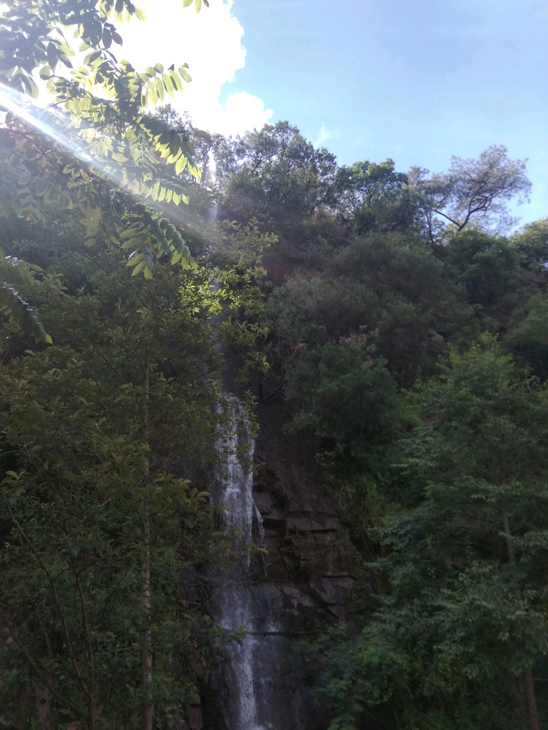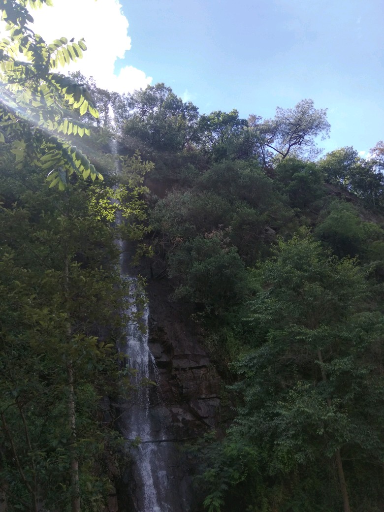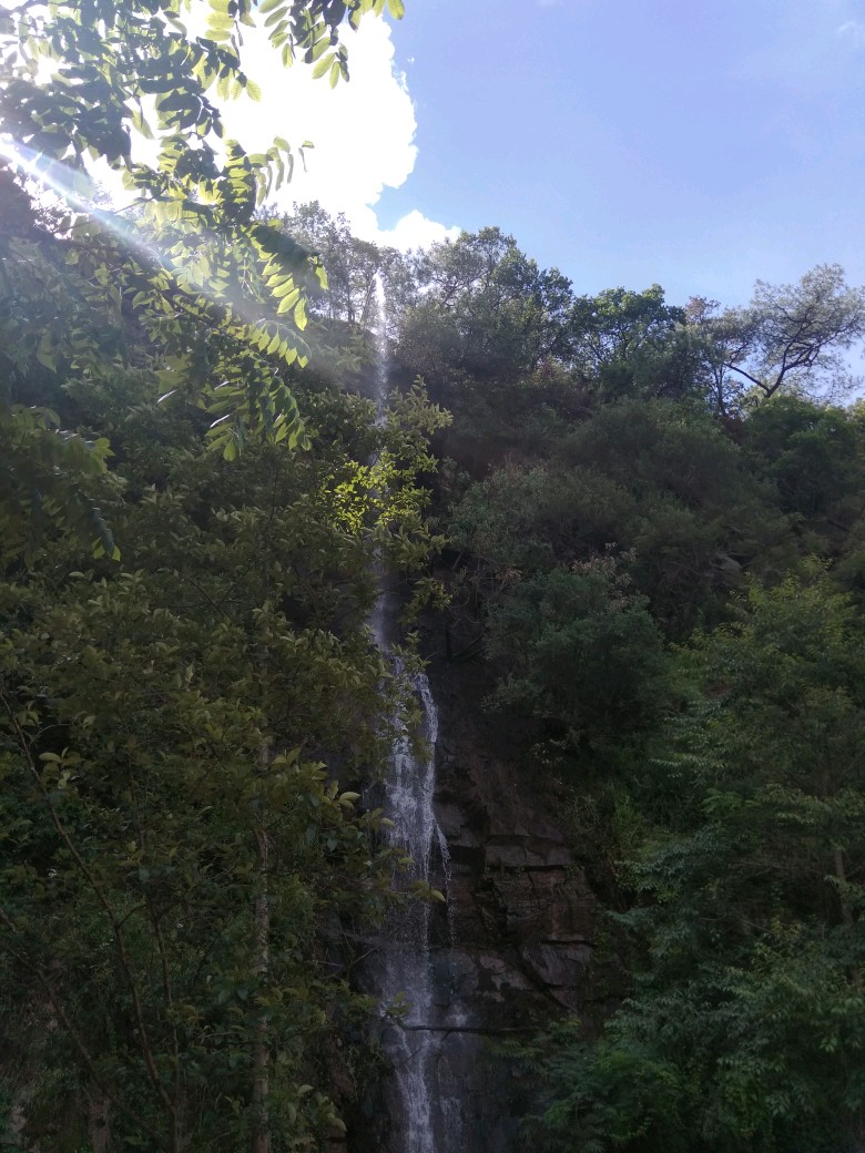 在这里小编要吐槽旅游区里面的瀑布。从远处看,瀑布细细的,奔腾着冲向谷底。在往上看呢?原来那些水是从山顶一根水管里面流出来的,顺着山崖形成了瀑布。通俗说这就是一个人工瀑布。