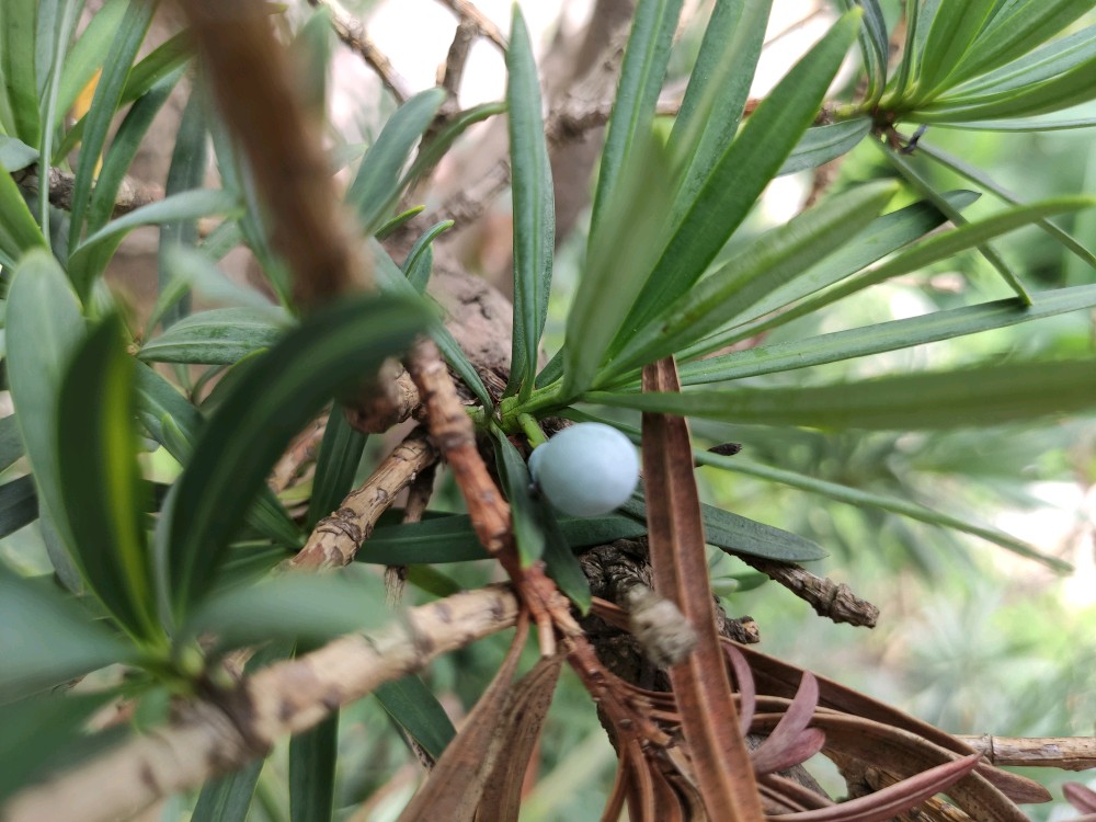 这是第一次见罗汉松的果果,以前看到罗汉松总习惯去找一圈,可是都没有结果。这一株,只随意的一暼,却满足了我多年的期盼