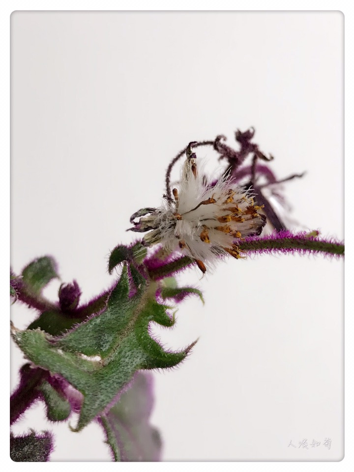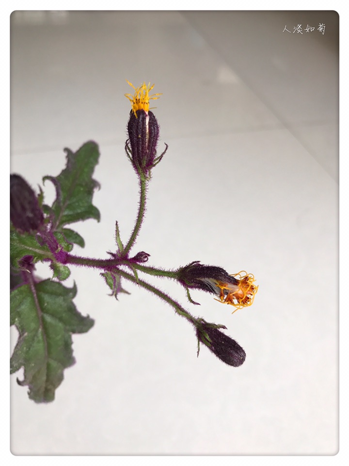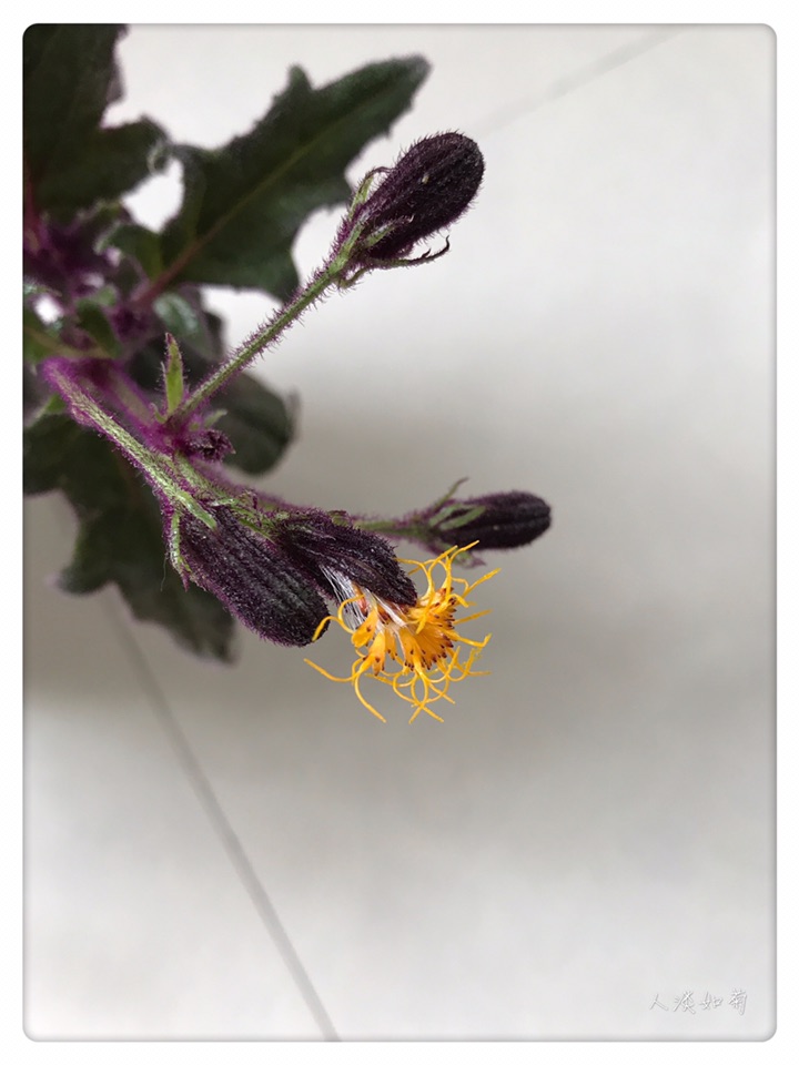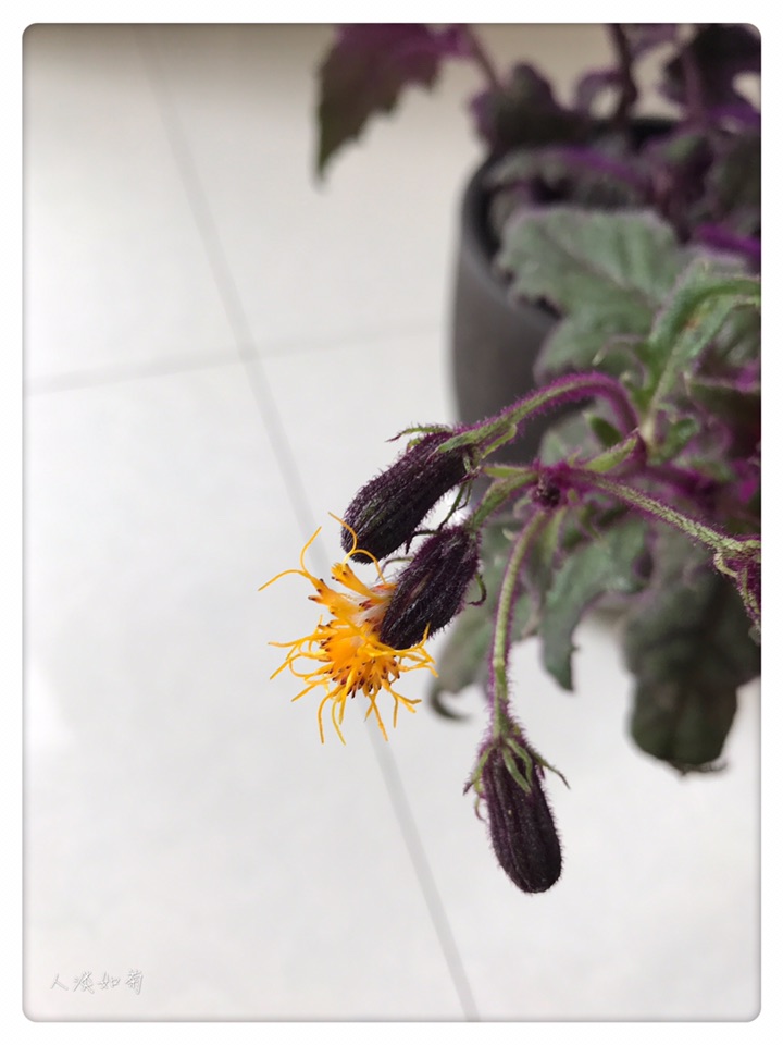 若不去买瓜叶菊就不会与紫鹅绒相遇,也就不能将它带回家,若那一瞬间将长满蚜虫的尖狠心掐掉就没有今天的花,遇见紫鹅绒是个意外,见到它的花也是个意外。