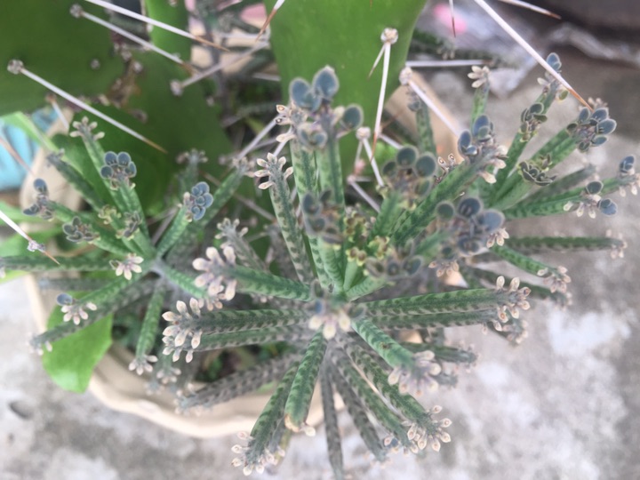 棒叶落地生根,最有趣的植物!像花一样的小东西是它的种子!