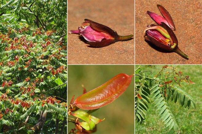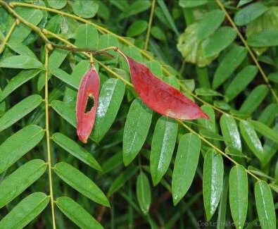 任豆(学名:Zenia insignis Chun)是蔷薇科,仁豆属乔木,高可达20m。小枝黑褐色,散生有黄白色的小皮孔;树皮粗糙,成片状脱落。芽椭圆状纺锤形,有少数鳞片;小叶薄革质,长圆状披针形;圆锥花序顶生,总花梗和花梗被黄色或棕色糙伏毛,花红色,苞片小,狭卵形;荚果长圆形或椭圆状长圆形,红棕色;种子圆形,平滑,有光泽,棕黑色;花期5月,果期6-8月。