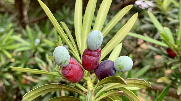 对了,罗汉松雌雄异株,只有雌株才结可爱的罗汉哦。