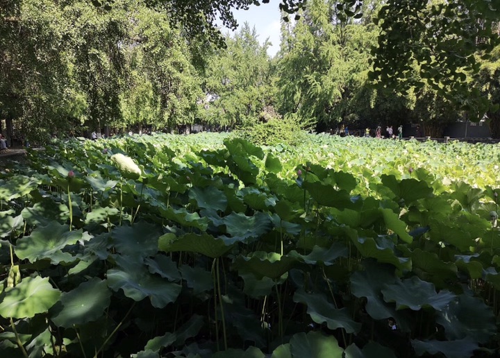 赠荷花 世间花叶不相伦,花入金盆叶作尘。惟有绿荷红菡萏,卷舒开合任天真。此花此叶常相映,翠减红衰愁杀人。