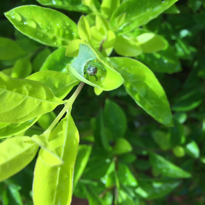 晨曦中,一只绿蜘蛛,正转回它的小巢。