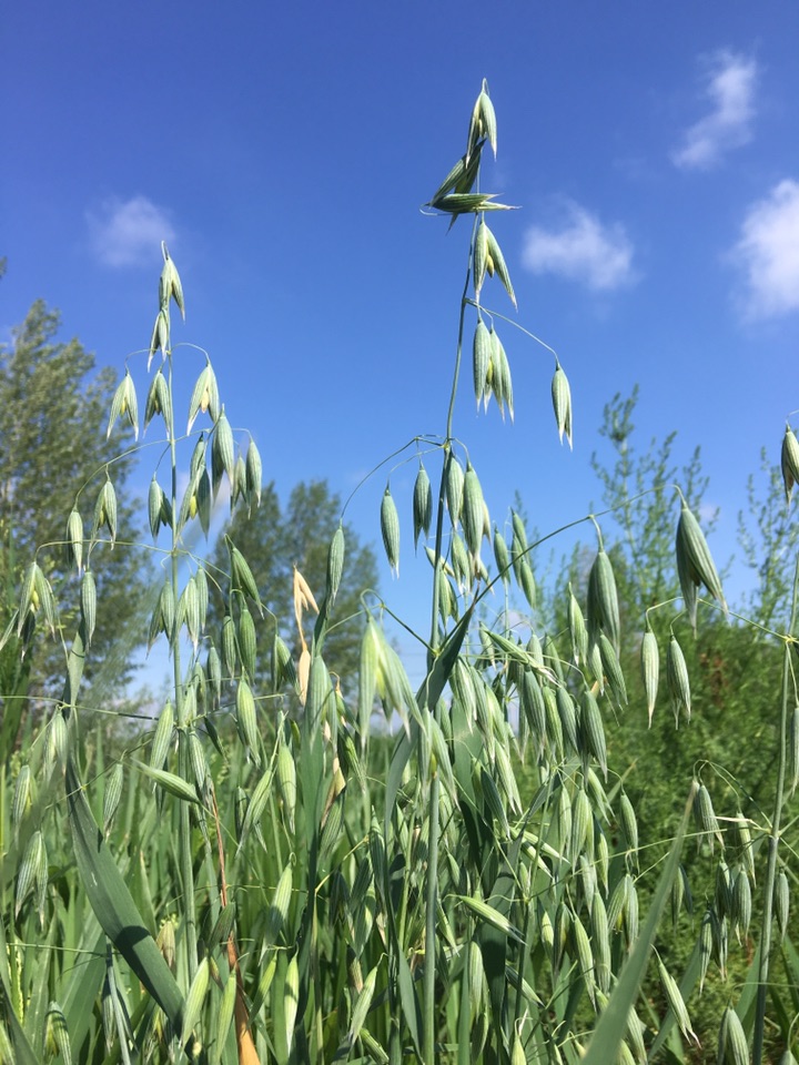 野燕麦也叫铃铛麦,你瞧满棵缀满了绿色的小铃铛。成熟后果壳里面包着一颗黑色果实,去掉那层黑皮就是燕麦粒。虽然麦粒对人体有诸多好处,但是对农作物来说,它有极大危害。它植株强壮,争水,争肥,争生长空间,而且难以根除,使真正的农作物减产、降低纯度质量。