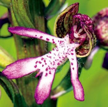 意大利红门兰(学名:Orchis italica Poir. ),也称裸男兰、意大利男人兰,为兰科红门兰属的一种,植株高20-50厘米,花顶生,为发白的粉红色或紫色,花被片为头盔状,有暗色条纹,整朵花的造型就像一个戴着草帽的裸体男人。蒴果直立。花期为4-5月。
