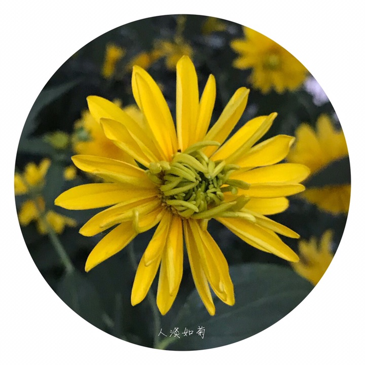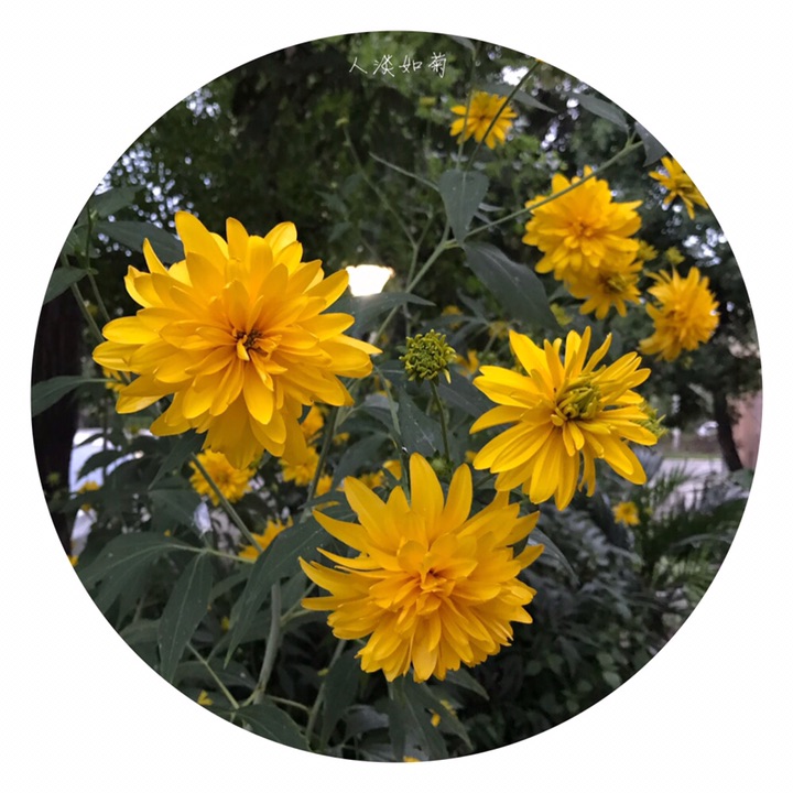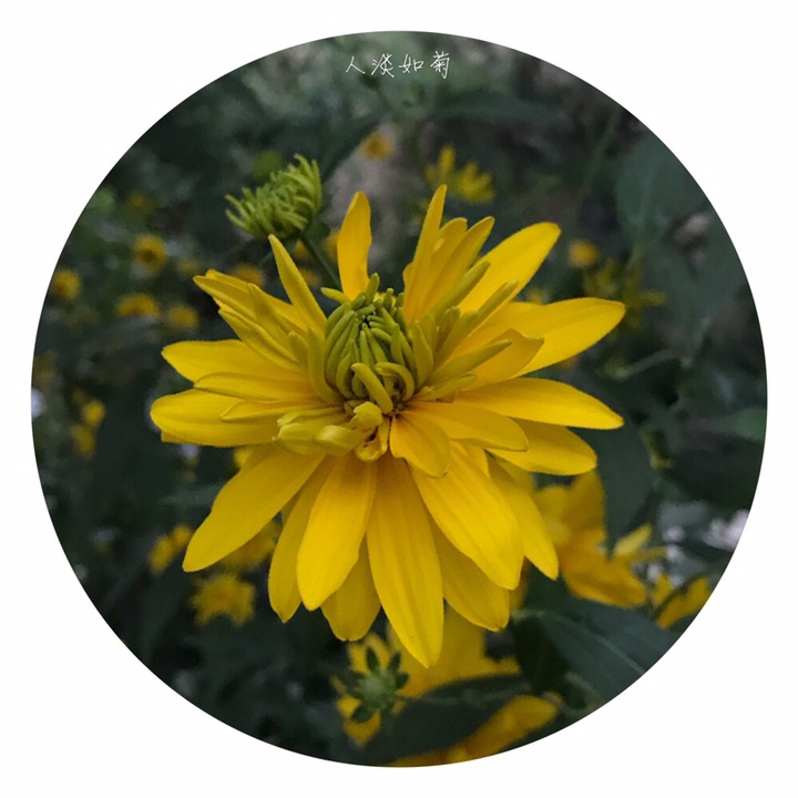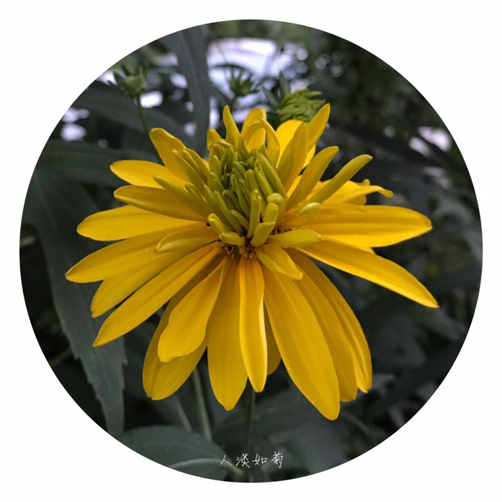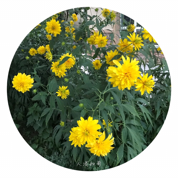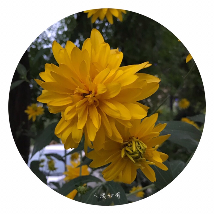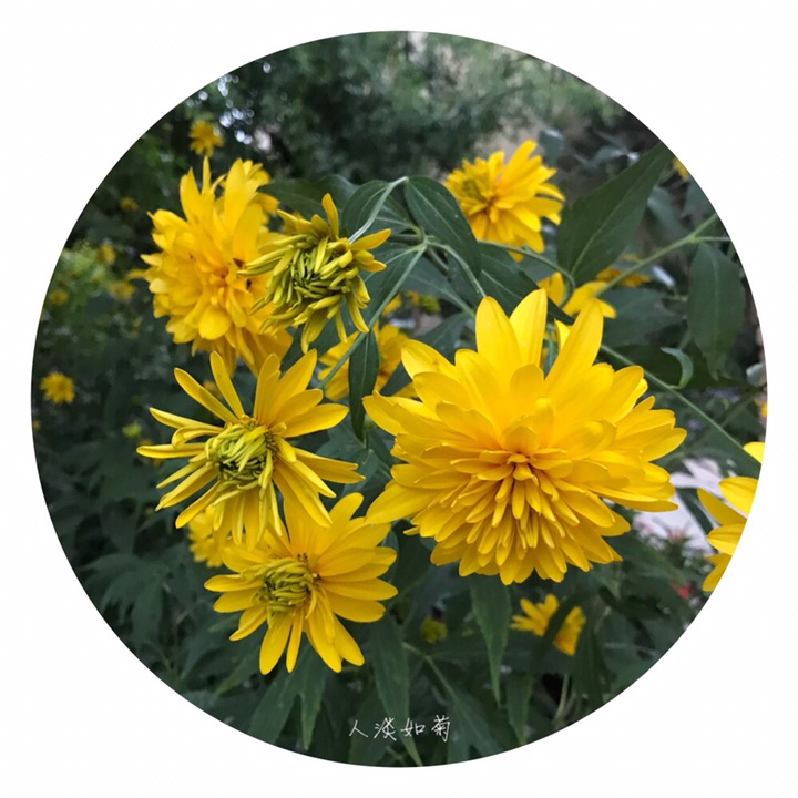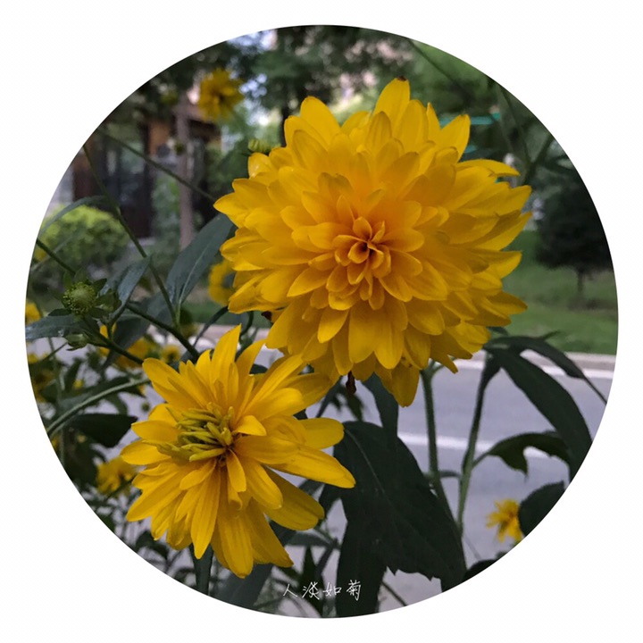 多年生草本,高60~180厘米。茎分枝;上部叶片阔披针形,叶较宽,基生叶羽状5~7裂;茎生叶3~5裂,边缘具稀锯齿。头状花序具长柄,花径10~20厘米,黄色,重瓣,花期6—8月。