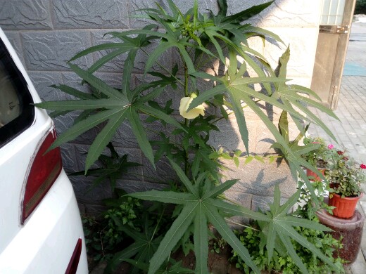 家里老人种的,用来治拉肚子,开的花跟这秋葵花倒也相似