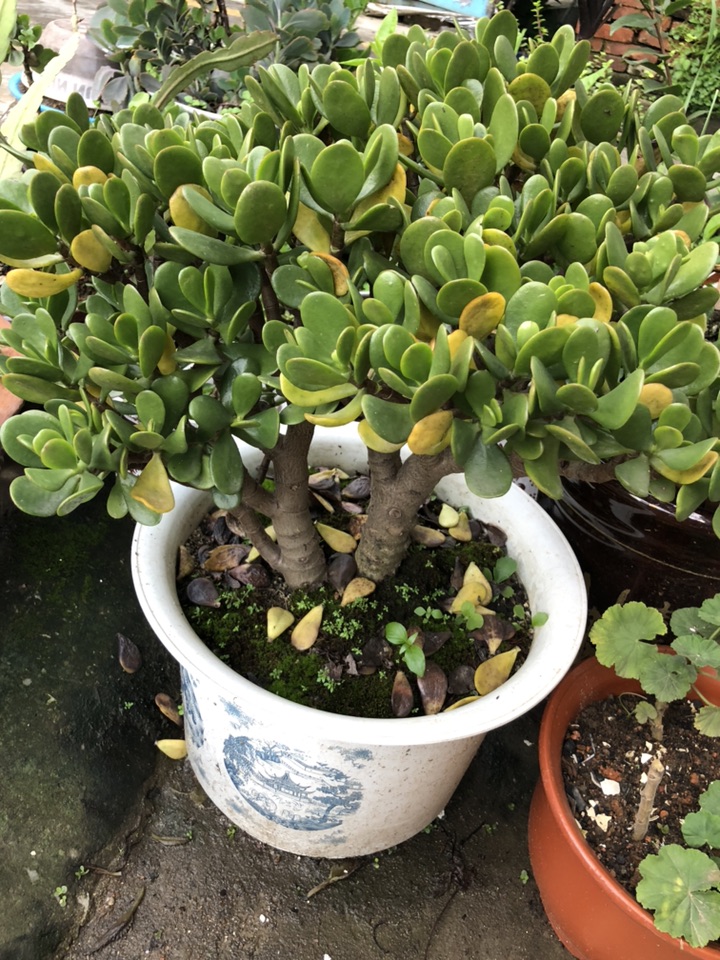 这棵玉树长的太密了,天天下雨,不透气,好多的叶子都黄了,今天修剪一下,修剪下来的玉树又可以种好几盆了!
