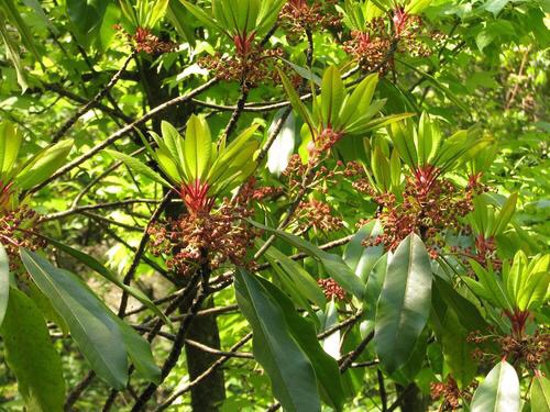 交让木常绿乔木,高4-10米或更高。单叶互生而丛生于枝端,常于新叶开放时,老叶全部凋落,因有“交让”木之称;花小,淡绿色,成短总状花序,雌雄异株;雄花不具花被而有长梗,雄蕊8-10,花丝短;雌花有花被片8-10,子房2室,柱头上密生深红色柔毛,花后变黑色。核果长椭圆形,黑色,外果皮肉质,内果皮坚硬。花期3-5月,果期8-10月。此树虽为赏绿,然当翌春新叶开放之初,老叶始全部祠零,’绮凝交替现象,交让之名,盖缘于是。4--5月间,开深黄色小花,雌雄异株。果实为椭圆型。
