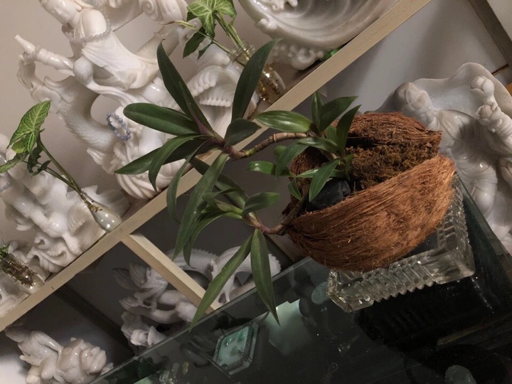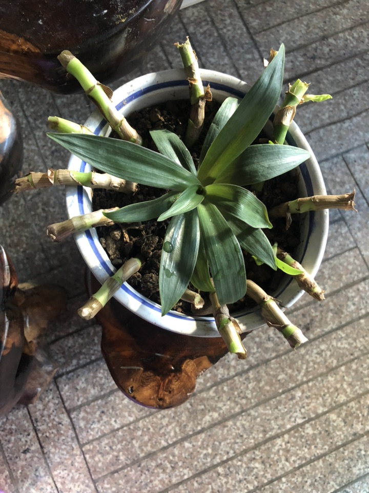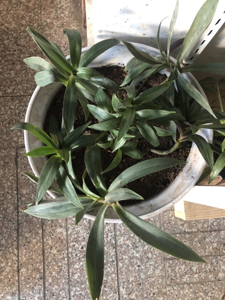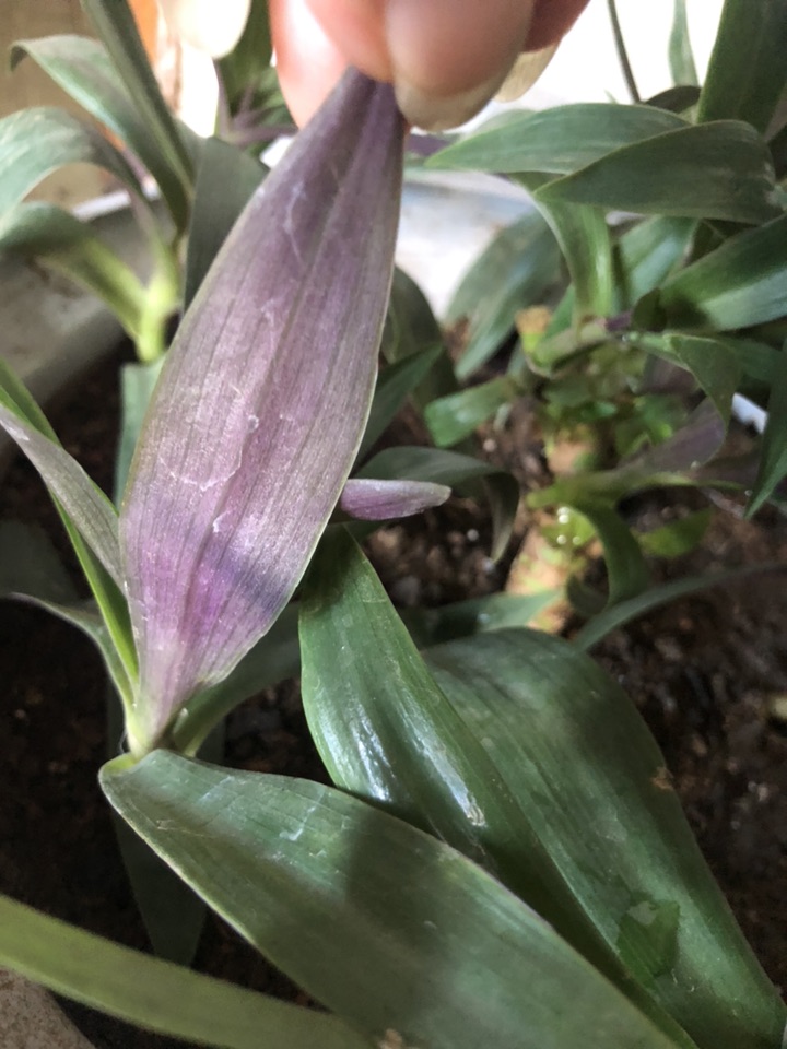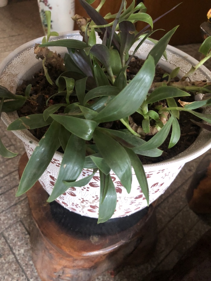 因为喜欢,又种了一盆(图5),室外还有,这些是室内的,它的名字叫蚌兰,开花像珍珠似的!也叫紫背万年青,叶子的背面是紫色!