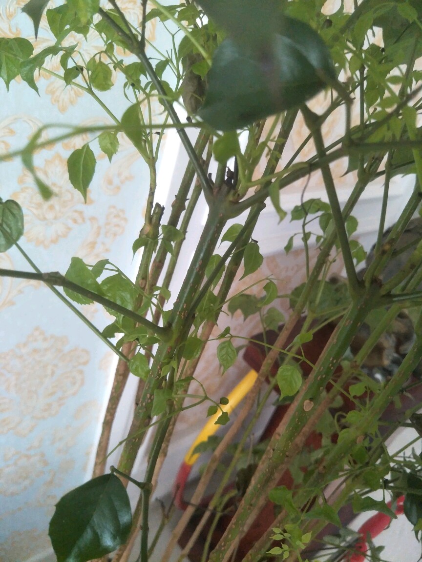 幸福树得蚧壳虫掉叶,后来喷了醋,杀虫后发的新芽开始变黑