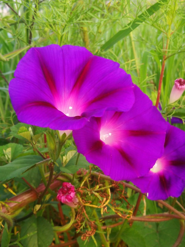 圆似流钱碧剪纱, 墙头藤蔓自交加; 天孙滴下相思泪, 长向秋深结此花。