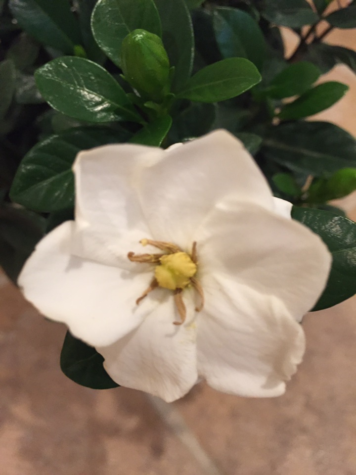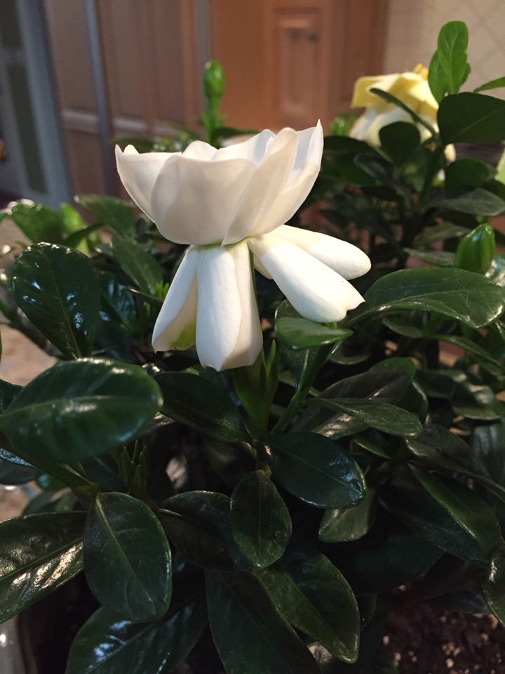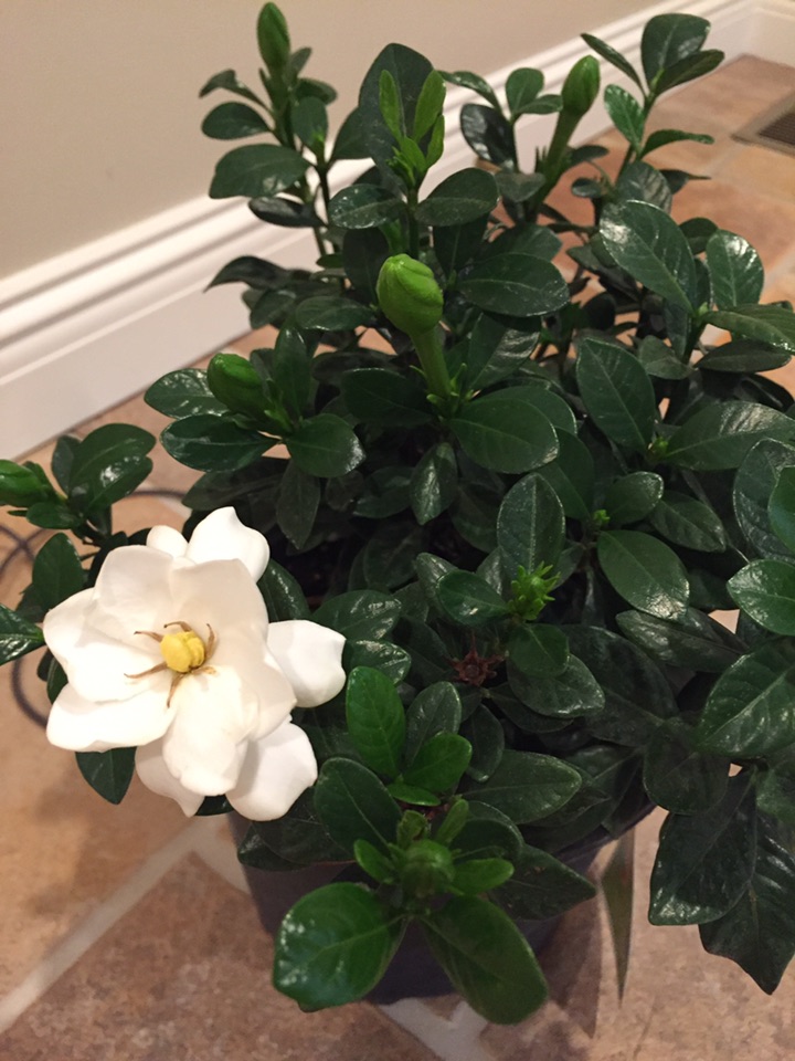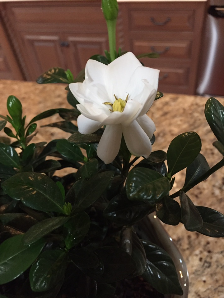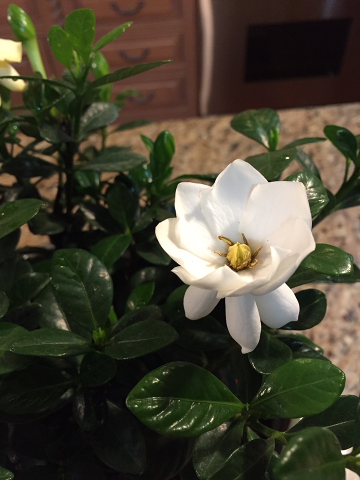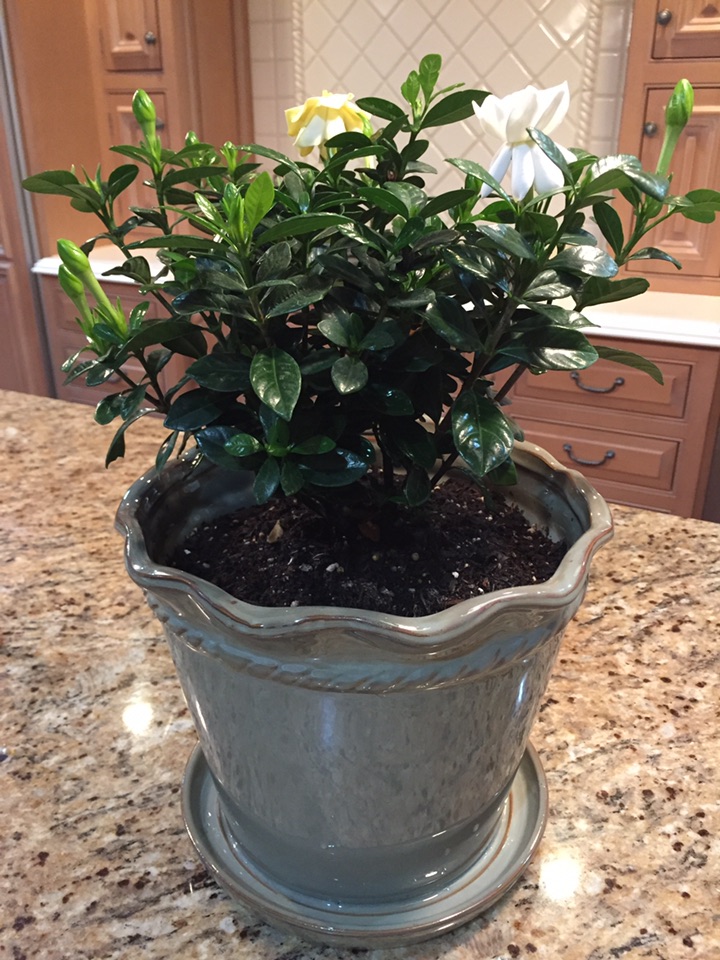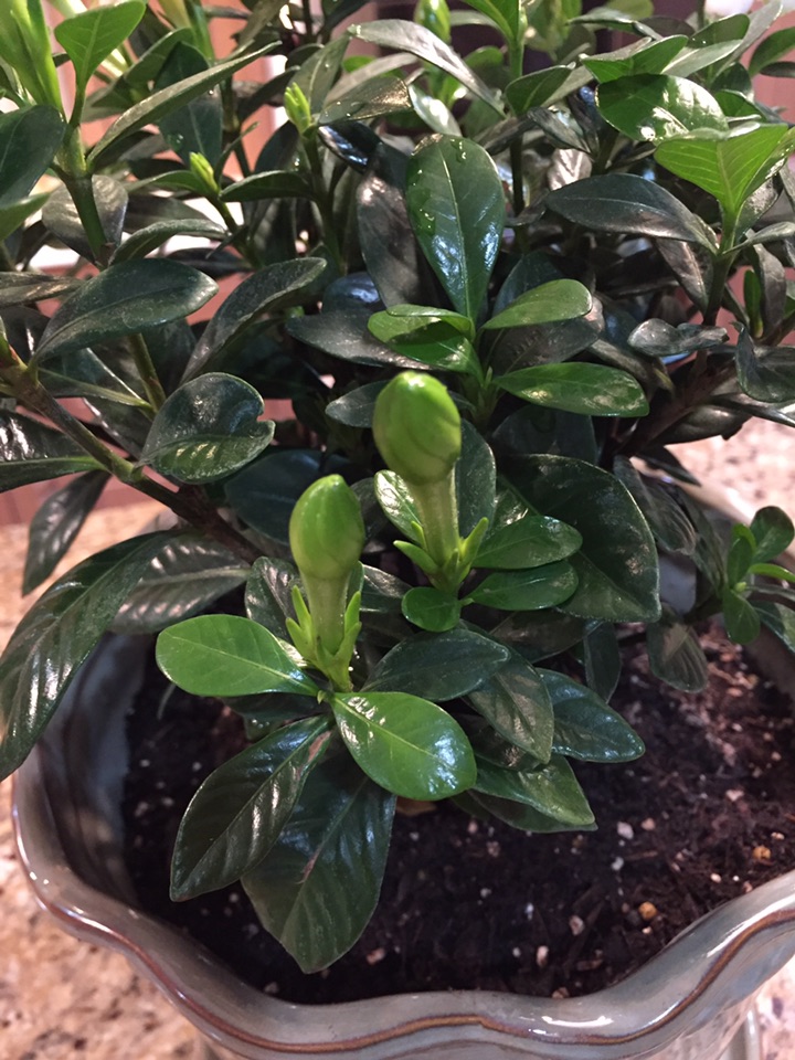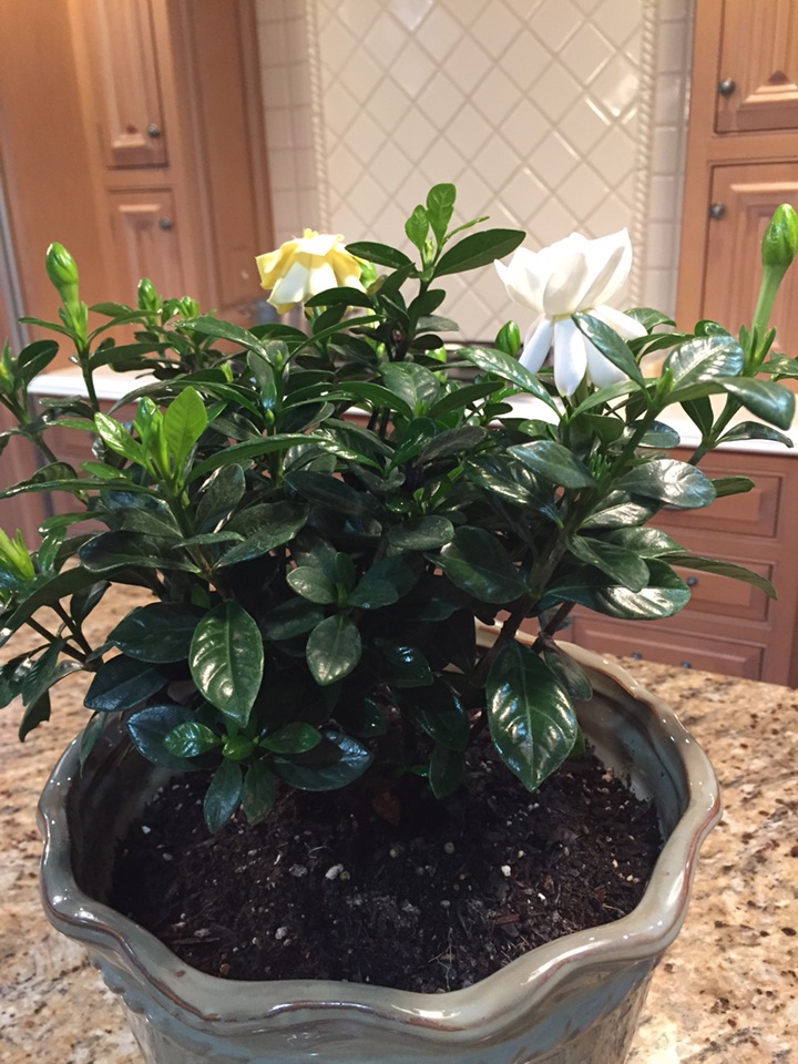这次买的是另外一个品种,矮植株,叫“buttons gardenia”,而不是像我上次买的是一棵树。今天趁着周末,专门买了一个新花盆、兴致勃勃地换了盆,希望历史重写,光明而美丽、馨香!
