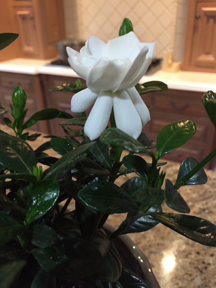 还是没忍住,又买了一盆栀子花;虽说养这类有香味儿的花儿的黑历史历历在目、教训惨痛,可是心里却依然放不下她们,每次遇见了、踫到了都忍不住驻足再三、看了又看,徘徊难离,真希望眼睛里能伸出一双手来抱走一盆....