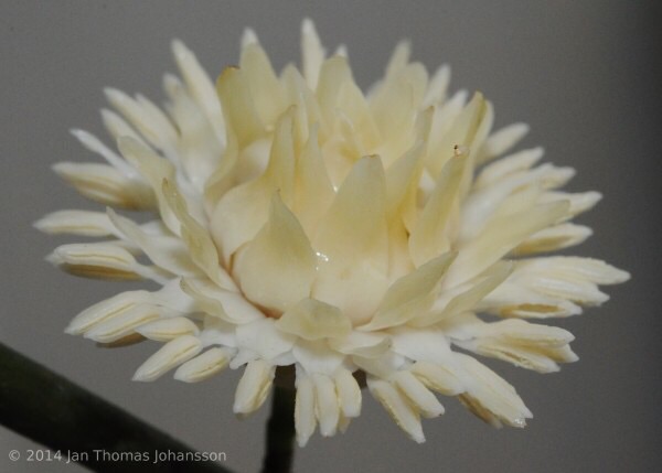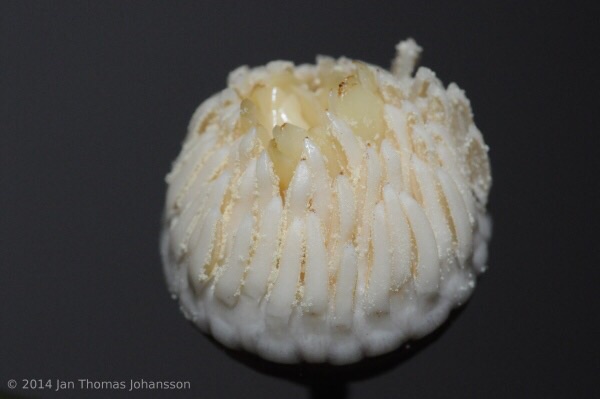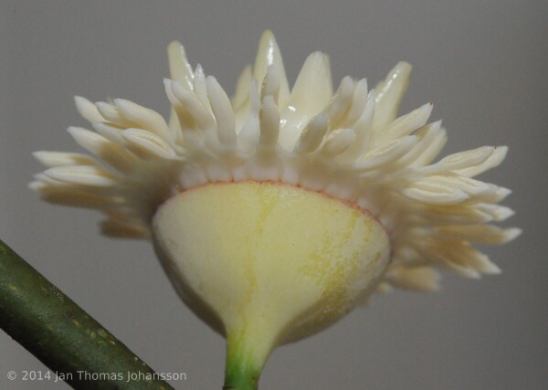 帽花木这类植物一共有3种,自成一个单属的科,帽花木科 Eupomatiaceae。以上的图片都是 Eupomatia laurina 这个物种,要算是帽花木当中最清纯的(呸,性器官在外面挂一圈,哪里清纯了!!);另外两个物种,除开以上特征,瓣化的雄蕊表面还布满斑点,自带密恐属性。