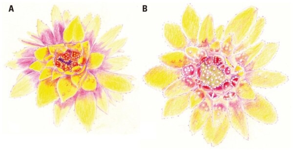 这下能看清楚了,不论是裂开的花药还是散发的花粉,都明确地告诉人们,这些长在花朵最外侧的长条状「花瓣」,真真切切是雄蕊,而不是花瓣。