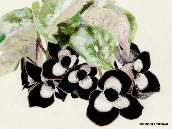 马兜铃的花,确实多是手绘(说到做到!)中呈现的样子。