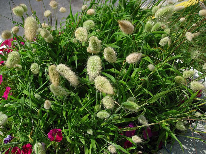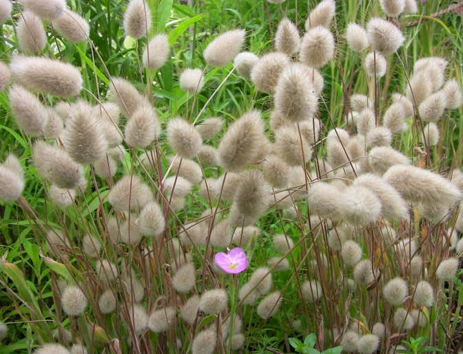 4.兔尾巴草,也是禾本科兔尾草属。花白色,毛茸茸的像兔子尾巴。