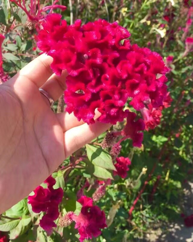 其实,鸡冠花也很漂亮的,还有药用价值!流鼻血的时候可以吃一些就止住鼻血了,它长大的时候更漂亮,一大朵一大朵的!