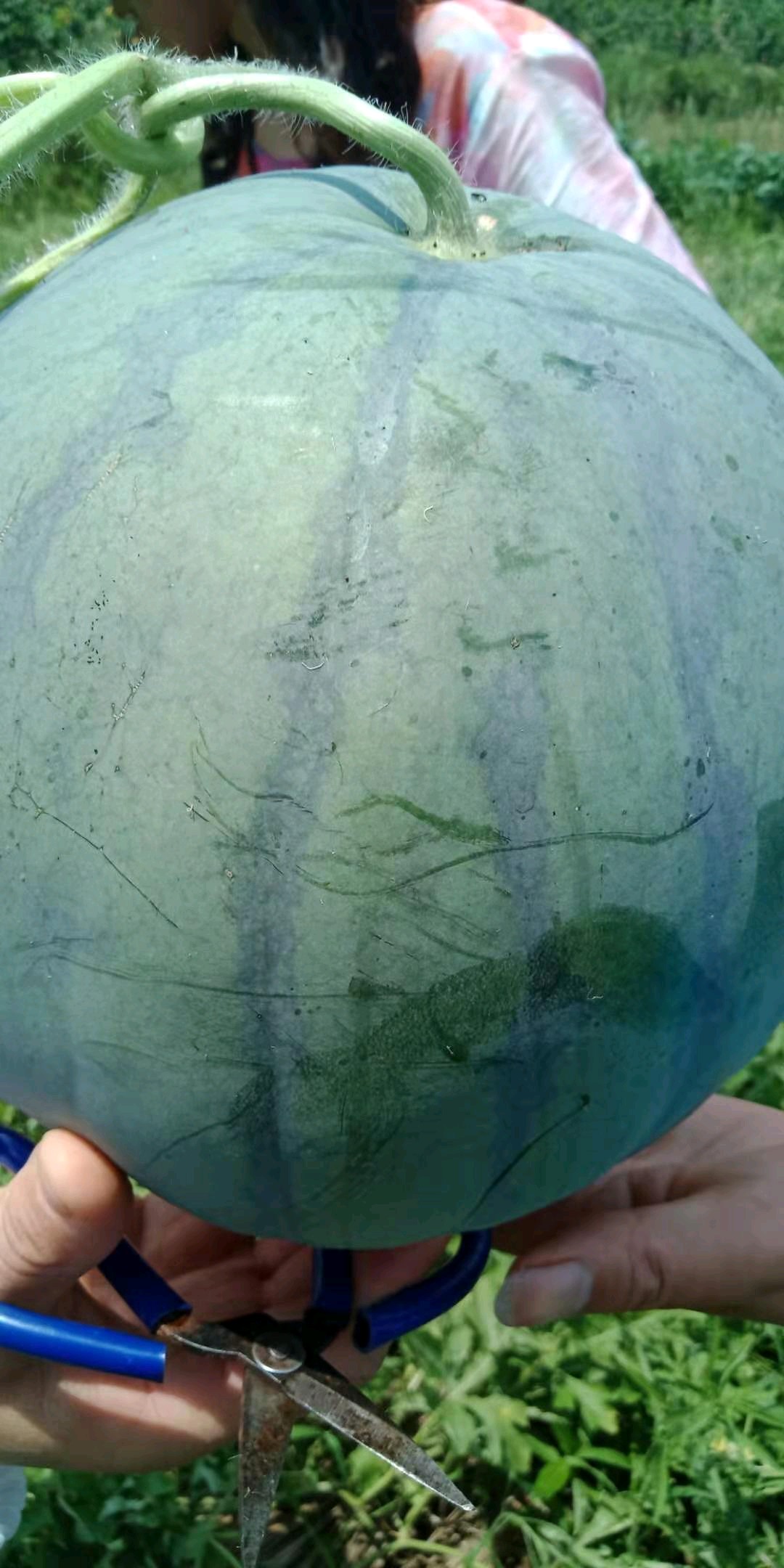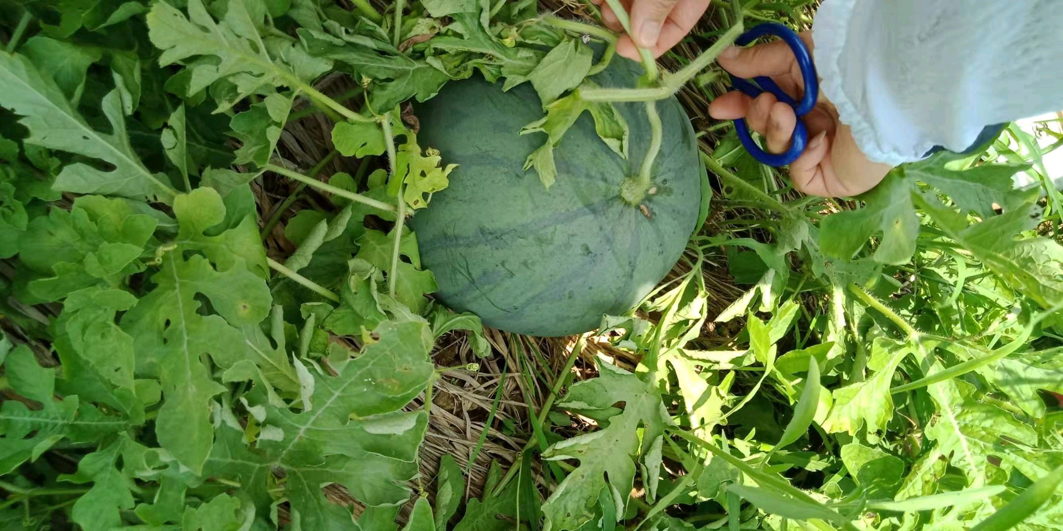 高山上的西瓜,表皮上有一层白白的霜一样的,个子不大,但是很甜哦!