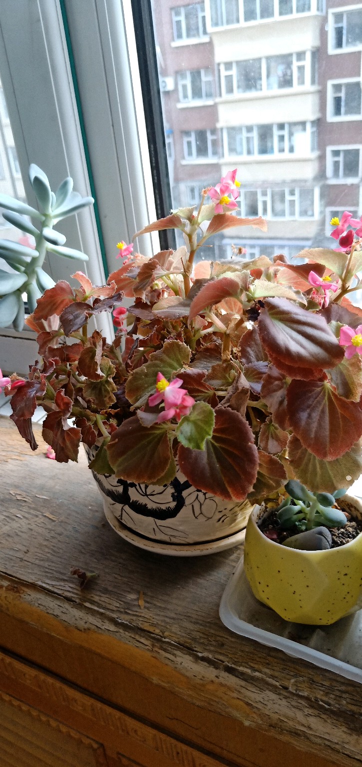 四季秋海棠(2棵,一颗红色,一颗粉色)
