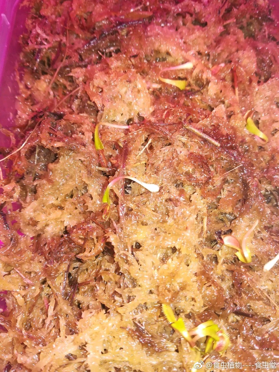 约春末夏初这个光阴是捕蝇草叶插的最佳时期,此时的温度适宜叶插的存活率绝对较高(景天同等适用)。先将捕蝇草带有捕虫夹的白色瓣状的叶柄连同白色的叶柄基部一起剥下,再将这些叶柄放到配好的栽培介质上(营养土或许水苔),坚持泥土湿度让空气中有足够的水份诱发生根,在明亮的光芒下静待数个星期就能够看到变化啦~(附:干净的栽培介质比较不会让叶柄腐烂,因此建议使用水苔作为叶插时的栽培介质,等到小苗长出来再考虑移植到泥炭土里~)。