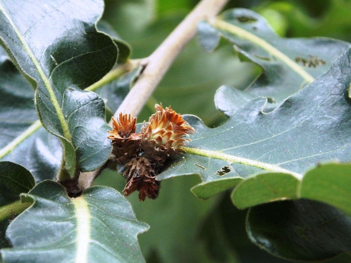 槲(hú)树,壳斗科落叶乔木,别名柞栎、橡树、青岗、金鸡树、大叶波罗等,抗风性较强,槲树的叶、皮和种子都有药用价值,具有活血,利小便,除面上齄赤,菝子淋疾的作用;木材为环孔材,材质坚硬,耐磨损,易翘裂,供坑木、地板等用材;叶含蛋白质14.9%,可饲柞蚕;种子含淀粉58.7%,含单宁5.0%,可酿酒或作饲料;树皮、种子入药作收敛剂;树皮、壳斗可提取栲胶。