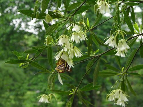 水石榕(学名:Elaeocarpus hainanensis Oliver),又名“水柳树”“海南胆八树”“海南杜英 ”,是杜英科,杜英属下的常绿小乔木。叶革质,聚生于枝顶,狭披针形至倒披针形;总状花序腋生,花白色,倒卵形;核果纺锤形,花期6-7月。