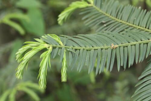 三尖杉常绿乔木,高10~20m。树皮灰褐色至红褐色。小枝对生,冬芽顶生。叶螺旋状排成2列,线状披针形,微弯,下面气孔带白色。花单性异株;雄球花呈球形,具短柄,每个雄球花有6~16雄蕊 ,基部具1苞片;雌球花具长梗,生于枝下部叶腋,由九对交互对生的苞片组成,每苞有2直立胚球。种子绿色,核果状,内种皮坚硬