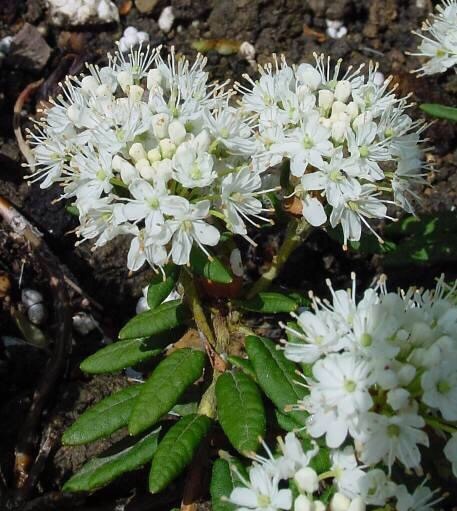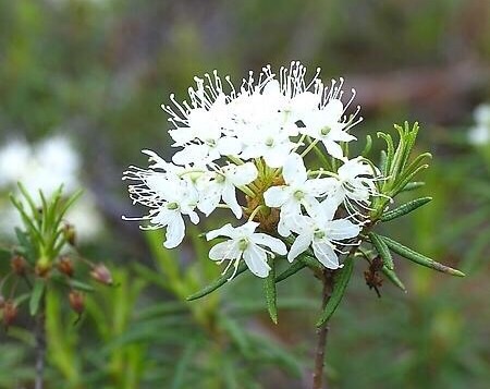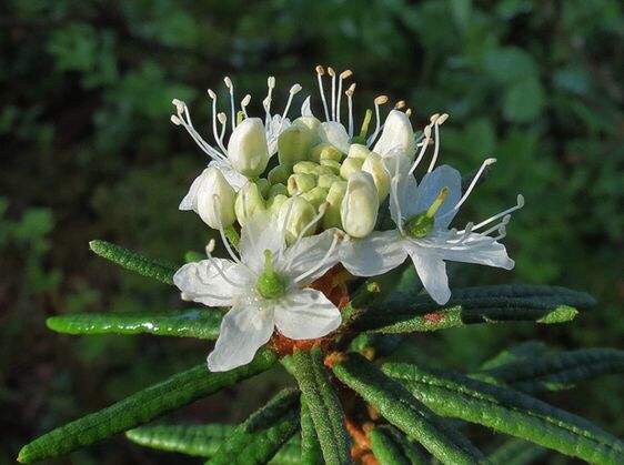 杜香(拉丁学名:Ledum palustre L.)杜鹃花科杜香属灌木。高可达50厘米。枝纤细,叶线形,边缘强烈反卷,花小型多数,乳白色;密生锈色茸毛;萼片卵圆形,蒴果卵形,花果期6~8月。